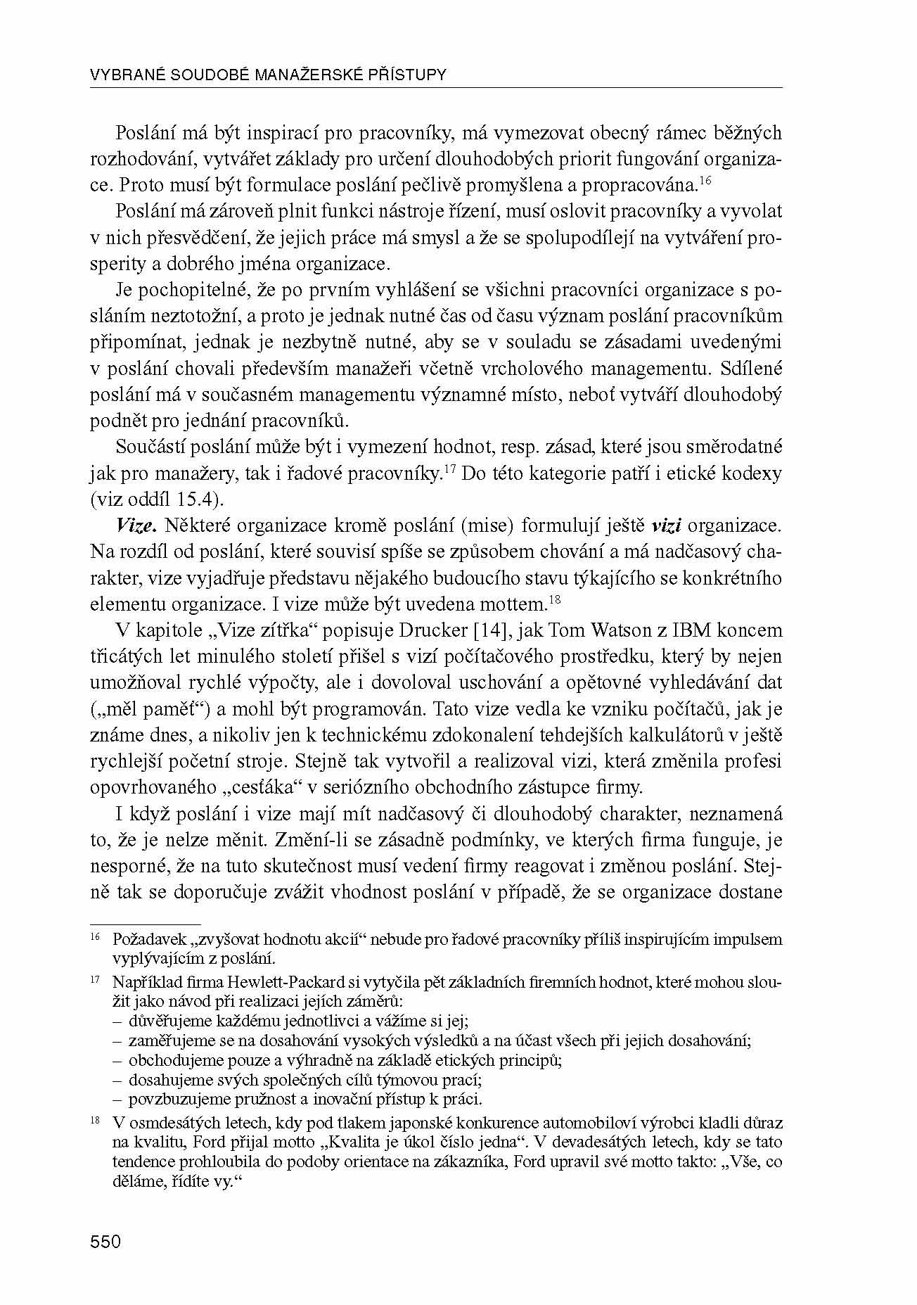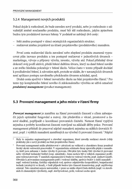 Inovované a aktualizované vydání klíčové domácí monografie na téma managementu představuje jak základní a tradiční, tak i aktuální a nová témata, s nimiž se vyrovnává jak teorie, tak i praxe moderního managementu. Kniha se uplatňuje nejen jako základní studijní materiál v mnoha kursech managementu na vysokých školách manažerského a ekonomického směru, ale i v dalších programech manažerského vzdělávání. Současně je zpracována i vzhledem k potřebám pracovníků praxe a jejich dalšího kvalifikačního rozvoje (podnikových manažerů, manažerů neziskových organizací, vedoucích pracovníků veřejné a státní správy aj.). Kniha vyšla s přispěním společnosti Olympus C&S spol. s r. o.