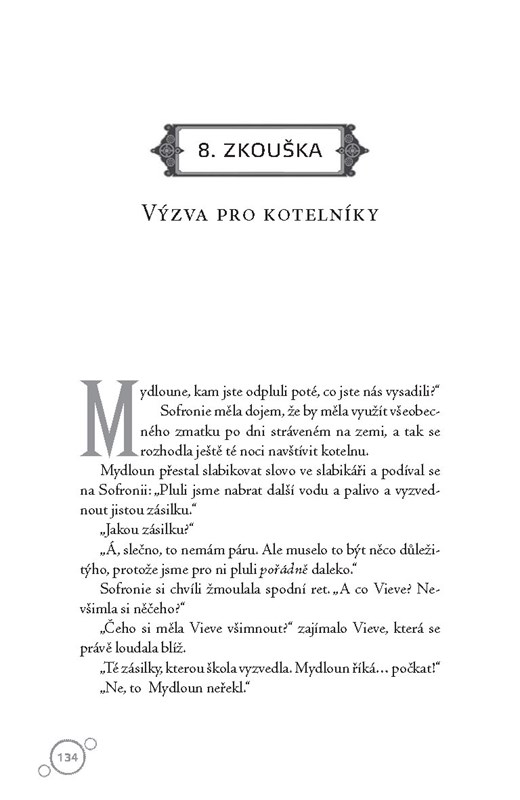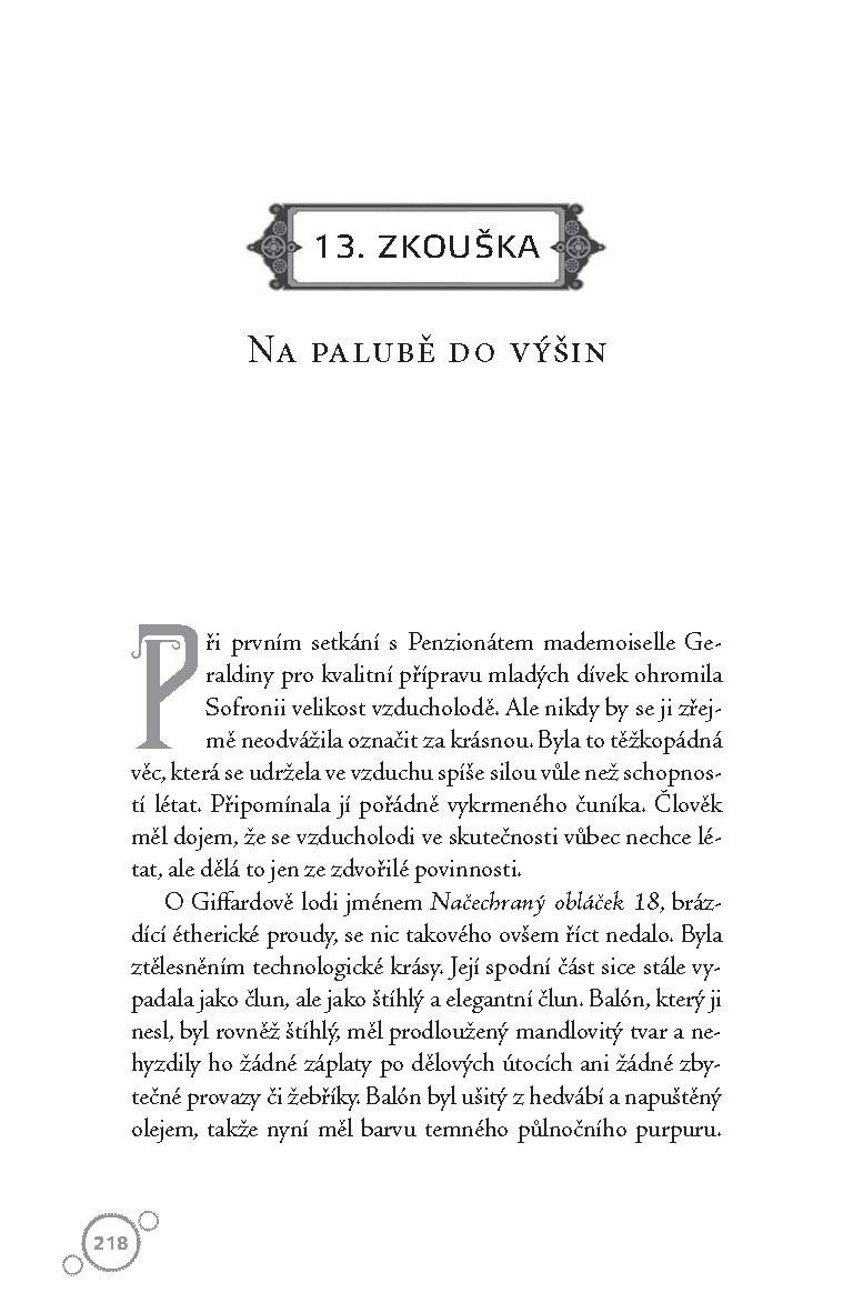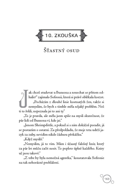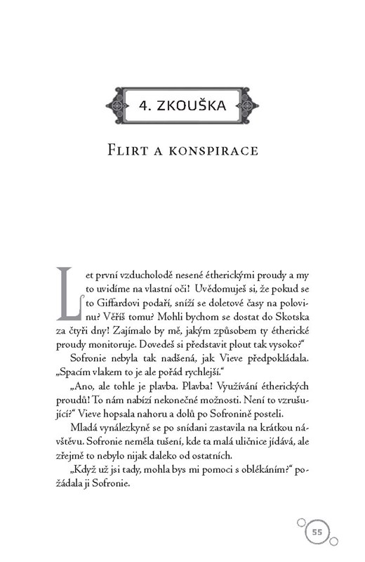 Sofronie nastupuje do druhého ročníku Penzionátu mademoiselle Geraldiny a hned musí pomoct své kamarádce Dimity zbavit se únosců a Vieve dostat se do Bunsonovy chlapecké školy. A záhada s prototypem pokračuje – tentokrát by někdo zabíjel za jeden droboučký ventil z divnostroje. Má totiž kontrolovat étherické proudy tak, jak se ještě zatím nikomu nepovedlo! A to by znamenalo převrat v dopravě! Vedle všech těchhle potíží Sofronie zvládne ještě flirtovat s kotelníkem Mydlounem a vykašlat se na Felixe, syna vévody z Golborne.