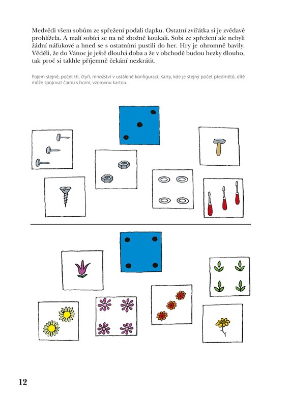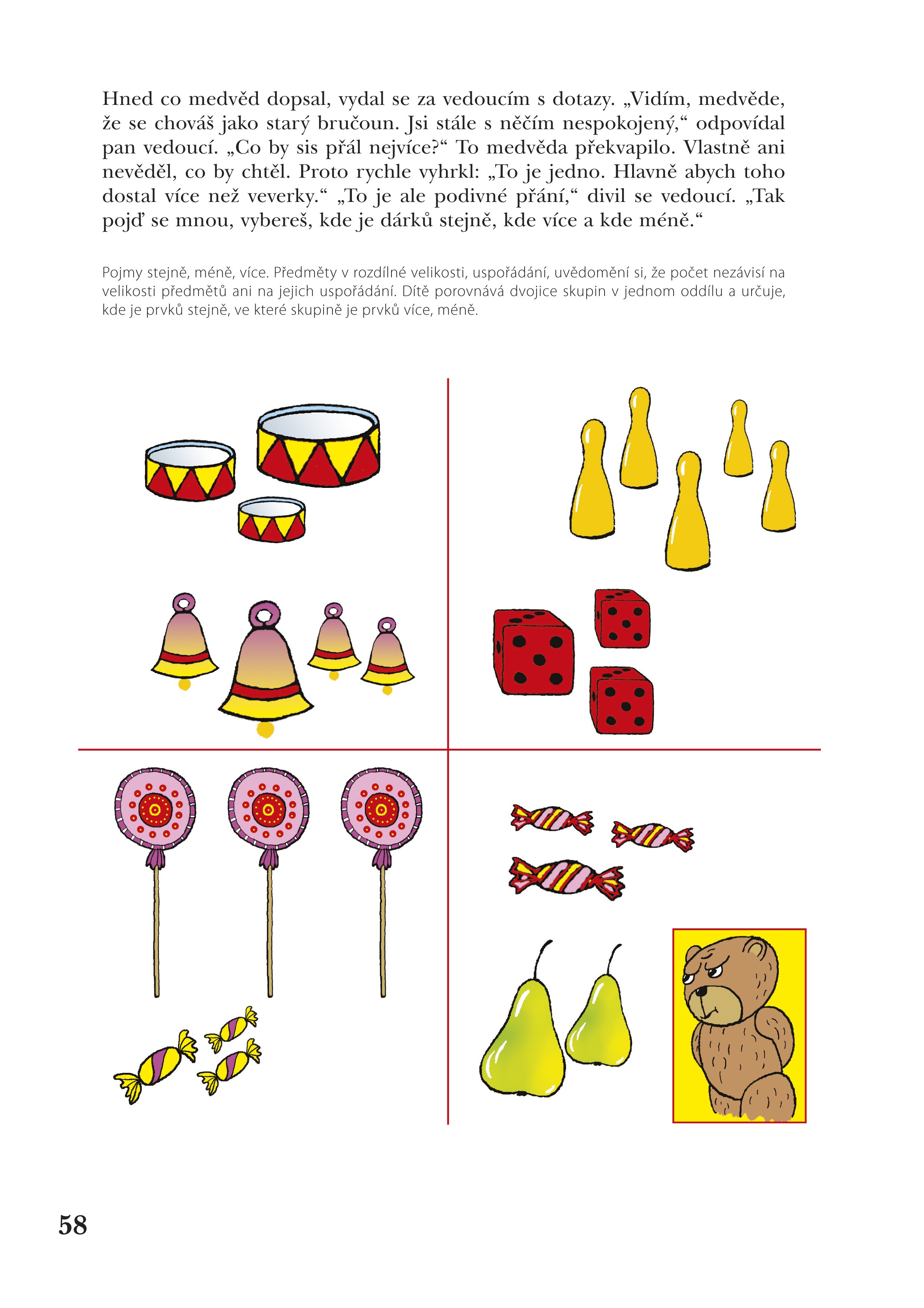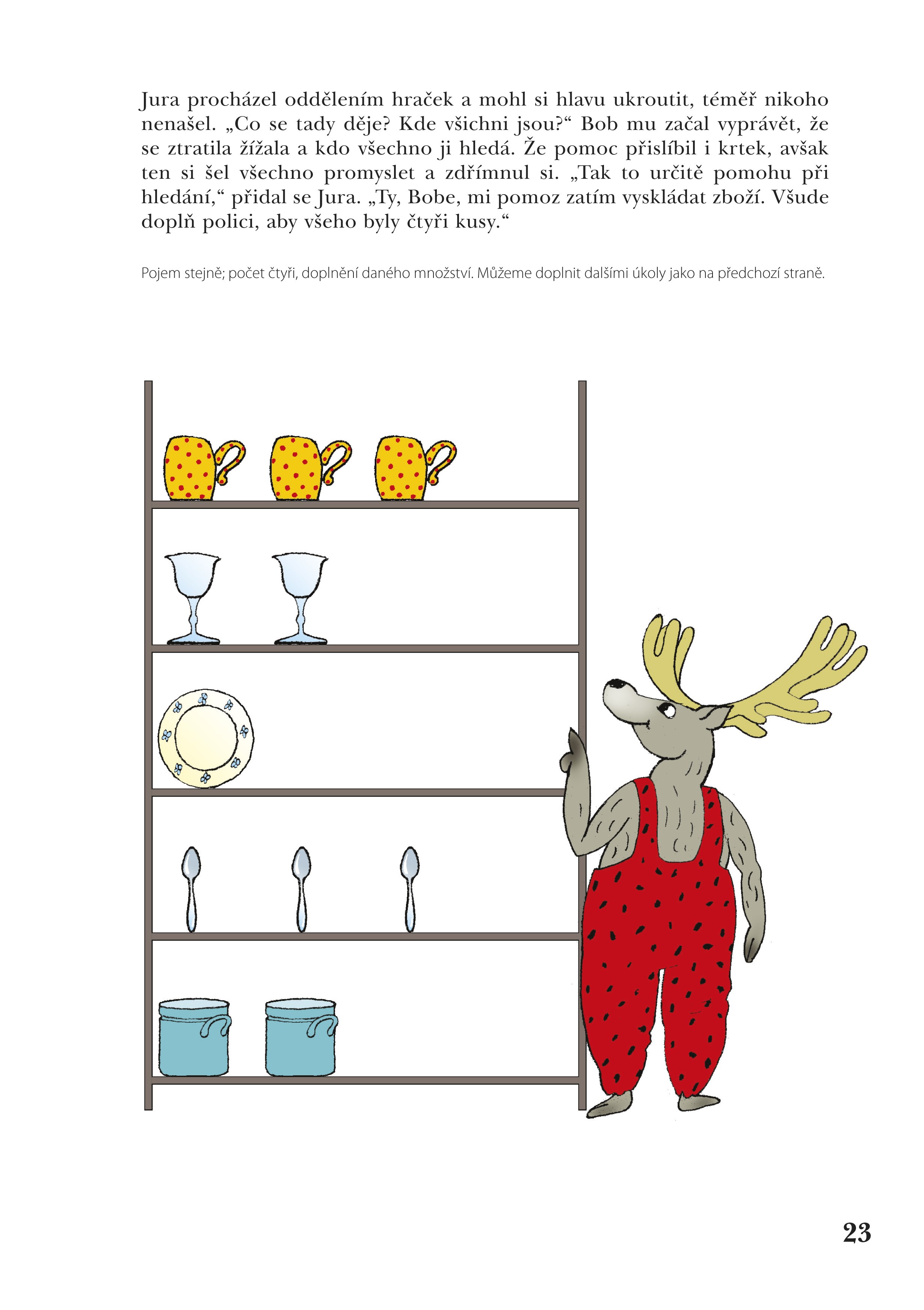 Záměrem publikace je i rozvíjet u dětí schopnost pohybovat se v oboru do pěti. Nemusí dosud znát čísla. Pracuje se pouze s množstvím prvků, které číslo obsahuje. Jde opět o to, aby byly u dítěte rozvinuty předpoklady pro matematické operace, které bude provádět v budoucnosti.