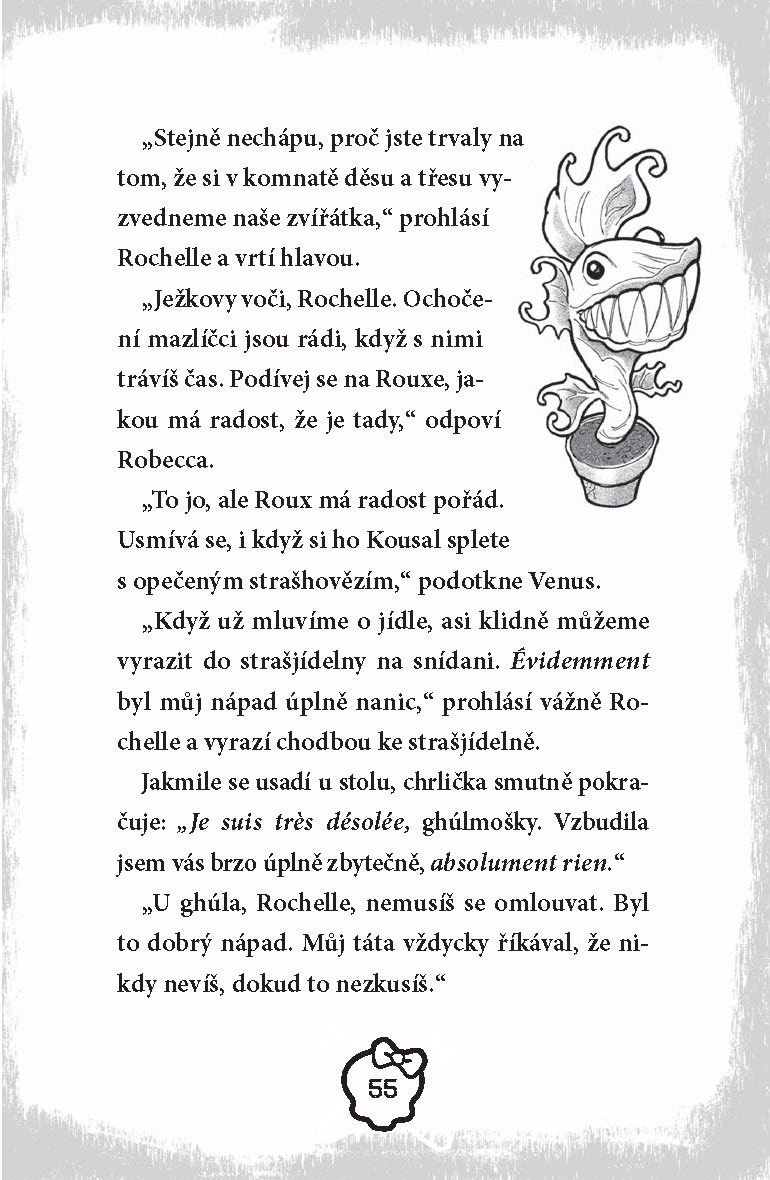Wydowna Spiderová, nová studentka a nejghúlmoška MONSTER party, už Rochelle Goylové, Robecce Steamové a Venus McFlytrapové téměř odhalila, jaká hrozba se stahuje kolem jejich školy. Existuje tajná společnost, kterou založila předešlá generace příšer, jejímž cílem je změnit MONSTER HIGH na děsivé místo, kde bude ghúl ghúlovi vlkem! Ale když ghúlmošky přijdou na to, že existuje druhá pradávná skupina příšer, nevědí, komu věřit. Jedna z nich se dokonce dozví, že klíč k vyřešení záhady se skrývá v jejích děsopředcích. Osud všech studentů je v jejich rukou!