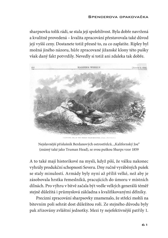 Seznámíte se tak např. se Spencerovou opakovačkou, armádním revolverem Colt ráže 45, Thompsonovým samopalem, puškou M16 a mnoha dalšími. Čtivou a poutavou formou poznáte nejen jejich dobu, ale i hrdiny, kteří je používali.