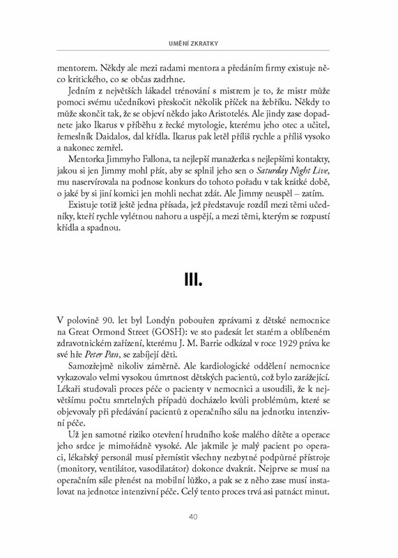 V knize Umění zkratky se autor snaží ukázat, jakým způsobem používali ti nejúspěšnější jedinci v dějinách laterální myšlení, aby uspěli v různých oblastech a s rozličnými cíli. Snaží se čtenáře přesvědčit, že ta nejrychlejší cesta k úspěchu není nikdy, či je málokdy, ta tradiční a osvědčená, že všechny konvence, na nichž jsme vyrostli, je možné porušit, obejít, opustit. Zkoumá nekonvenční chování výrazných a úspěšných osobností, počínaje vynikajícími podnikateli a lidmi, kteří se prosadili například v šoubyznysu, konče.