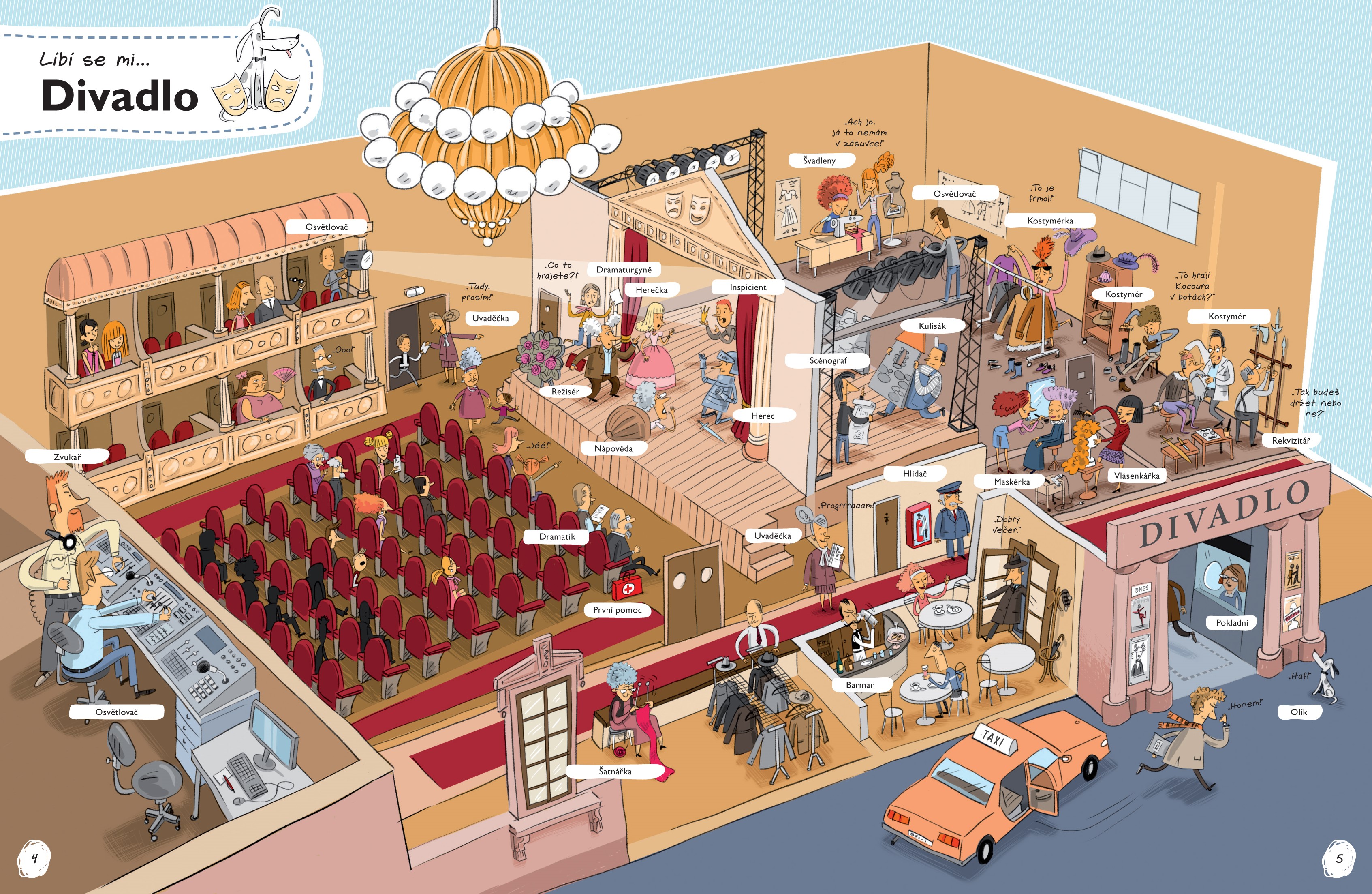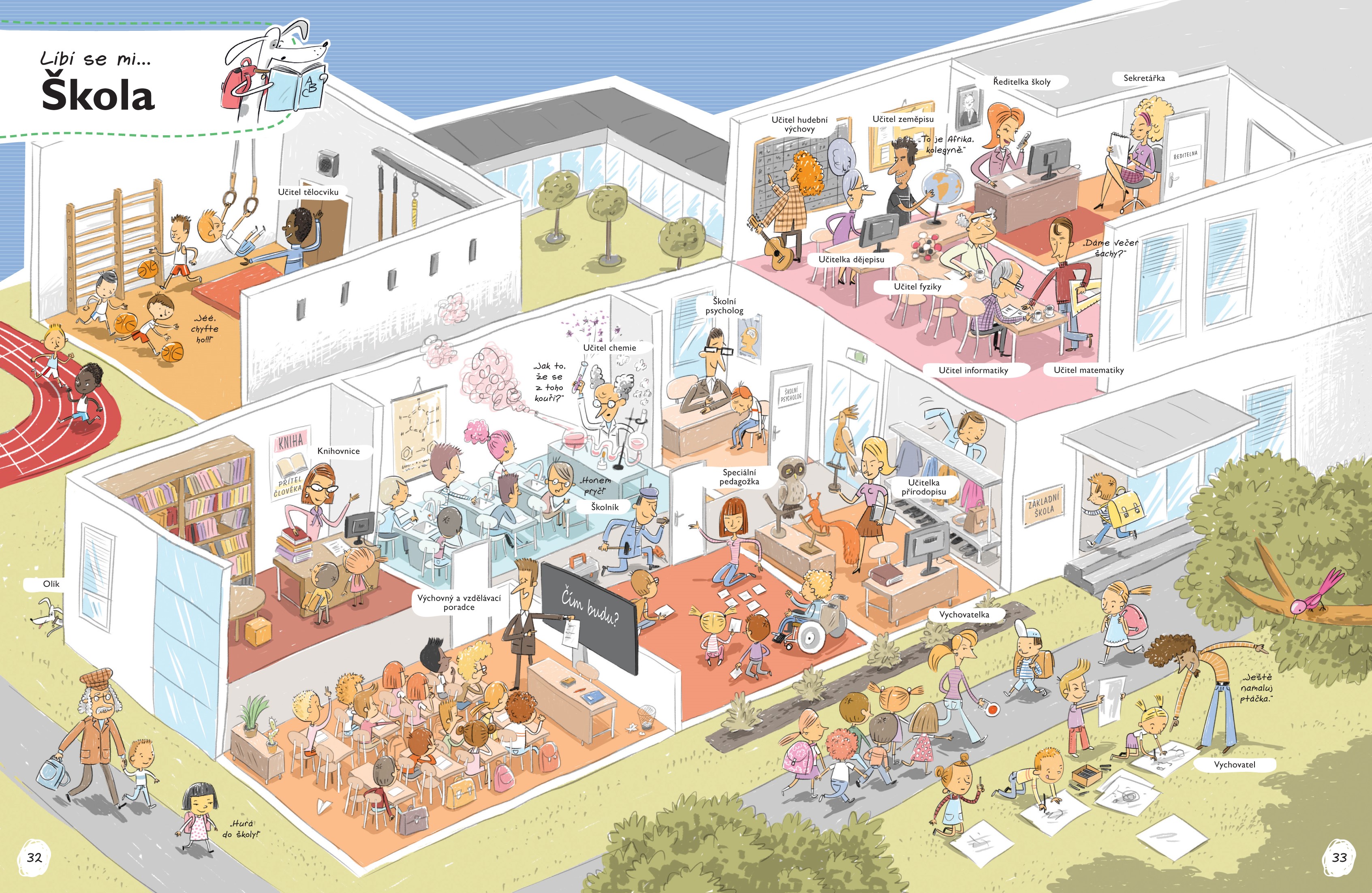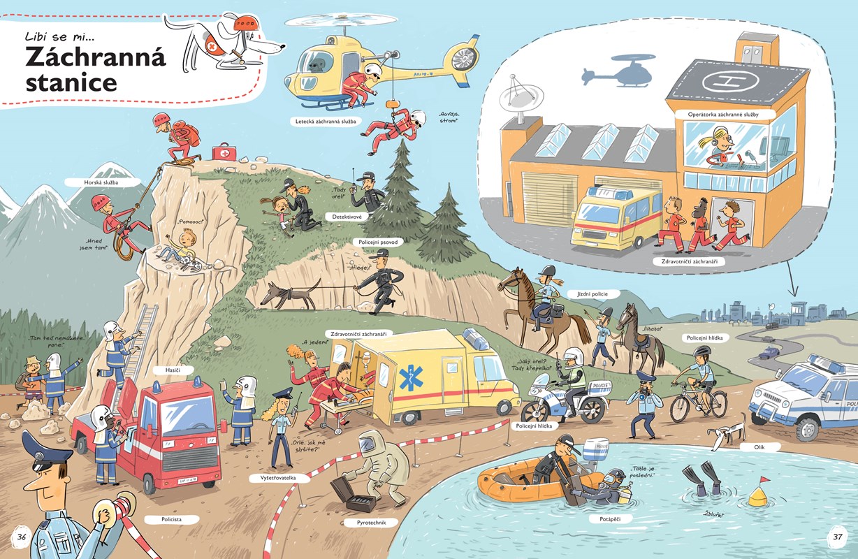 Otevři tuto knihu a vypravte se spolu na různá místa – třeba do muzea, školy, filmového studia, na nádraží či kosmodrom. Čeká na tebe spousta běžných i netradičních profesí. Prohlédni si je nejprve na velkých barevných ilustracích a pak si přečti podrobnější informace o vybraných zaměstnáních.