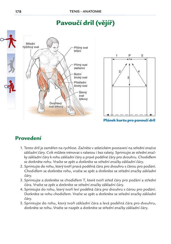 Tato kniha vám ukáže nový pohled na vaší hru - jak se stát jedničkou turnajů zlepšením síly, rychlosti a schopnosti k výkonnějším podáním a přesnějším úderům. Obsahuje 72 nejefektivnějších cviků, krok za krokem, s barevnými anatomickými ilustracemi, které zvýrazňují svalovou akci. Ilustrace aktivních svalů u forhendu, bekhendu, voleje, smeče a podání vám ukáže, jak je dané cvičení spojeno s tenisovou hrou. Naučíte se, jak lze cviky obměnit a zaměřit na cílové oblasti, jak zlepšit vaše schopnosti a snížit výskyt běžných tenisových zranění. Vytvoříte si tréninkový program podle vašich individuálních potřeb a cílů.