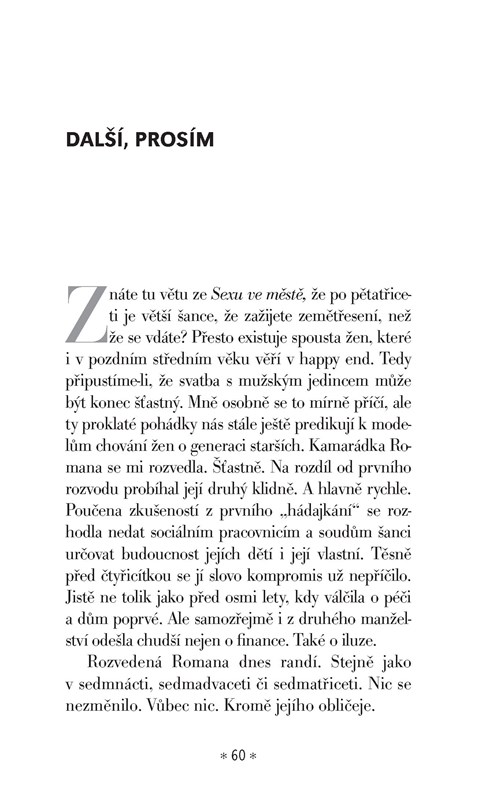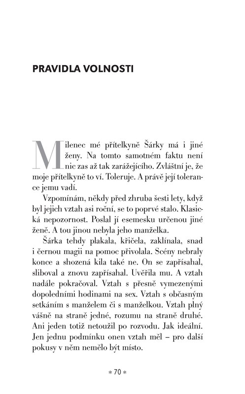 Fejetony a povídky Barbary Nesvadbové o vášni, lásce, zklamání, nevěře, deziluzi, zášti, přátelství i žárlivosti.