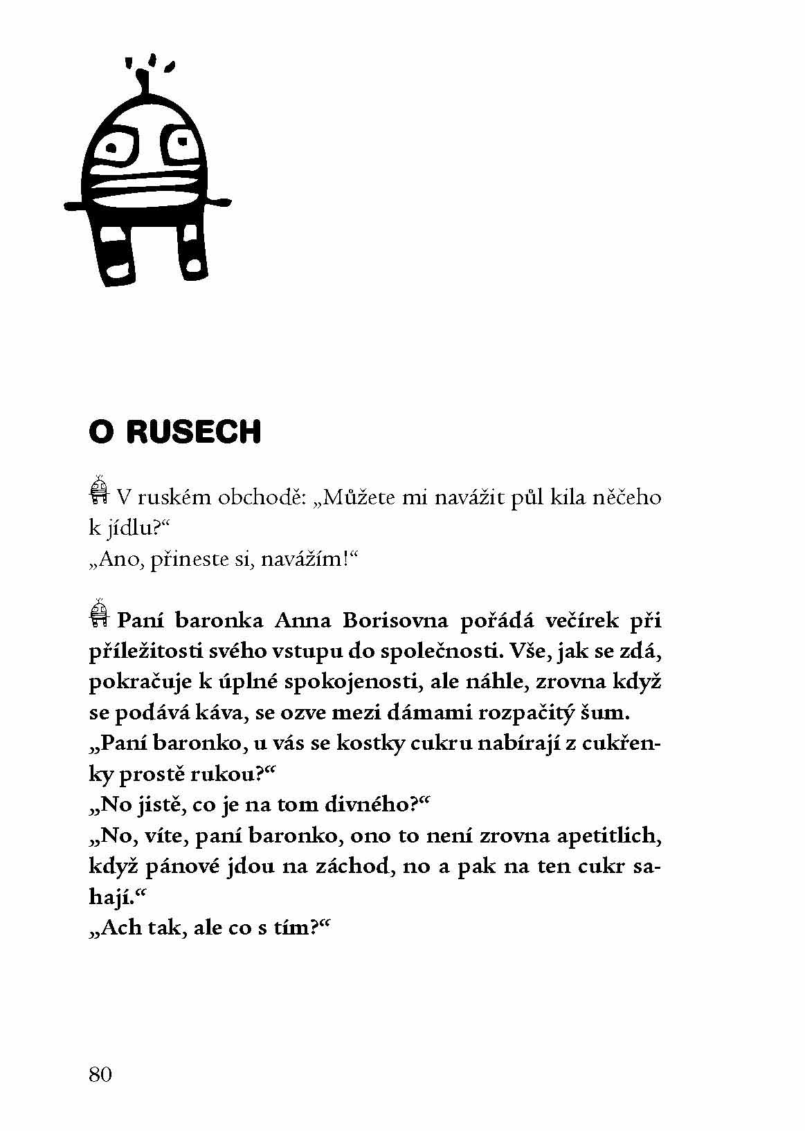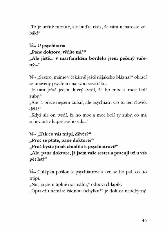 Nejlepší vtipy na oblíbená témata pěkně pohromadě, navíc s ilustracemi Petra „Pivrnce“ Urbana. Znáte třeba tenhle? Potkají se kamarádi: „Mám strach. Moje žena mi slíbila, že se mnou třicet let nepromluví.“ To není tak strašné.“ „Já vím, ale dneska je poslední den!“