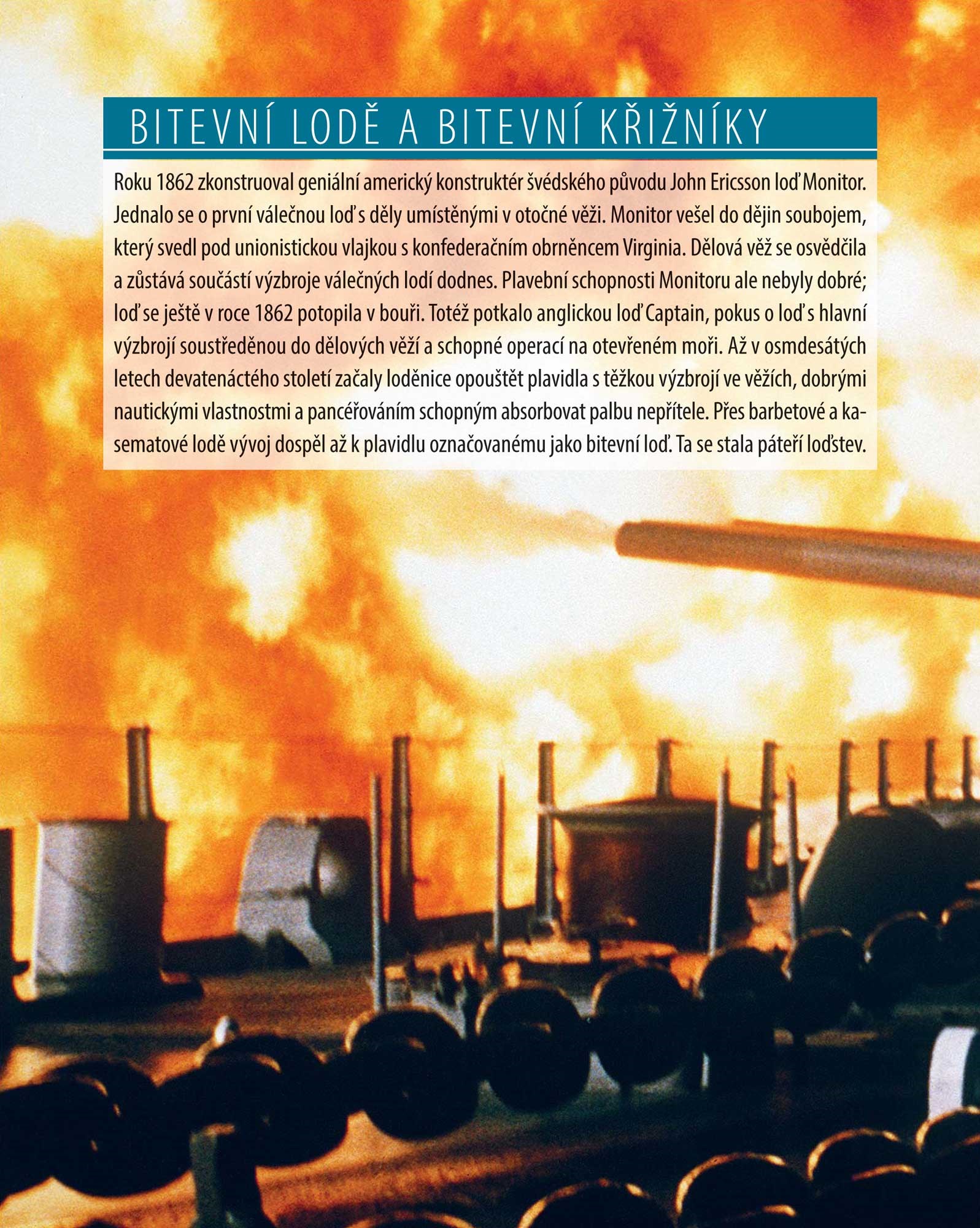 Celobarevná obrazová encyklopedie přináší přehled sedmdesáti nejzajímavějších válečných lodí dvacátého století. Představuje plavidla hlavních kategorií, která byla z historického hlediska významná svou konstrukcí, osudem či uplatněním ve válkách a námořních operacích. Kniha představuje výzbroj, taktiku i bojovou strategii válečných lodí a dalších bojových plavidel.