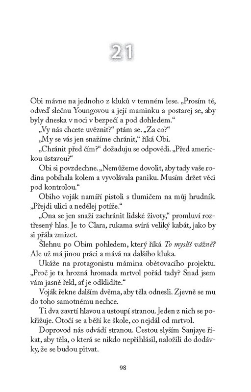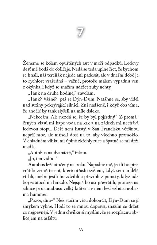 V prvním dílu světového bestselleru Pád andělů jsme sledovali osud dívky Penryn a její rodiny poté, co na zem sestoupili andělé apokalypsy a uvrhli celý svět do chaosu. Pro všechny lidské bytosti nastal Svět poté. Nikomu se nedá věřit, každý musí spoléhat jen sám na sebe. To se týká jak Penryn, která pro ostatní jakoby vstala z mrtvých, tak i Paige, připomínající nyní oživlé monstrum. Po masakru přeživších lidí Paige zmizí a Penryn se vydává sestru hledat. Projíždí ulicemi San Franciska a nestačí se divit – kde všichni jsou? Pátrání ji zavede až do doupěte andělů, kde pronikne do jejich hrozivých plánů.