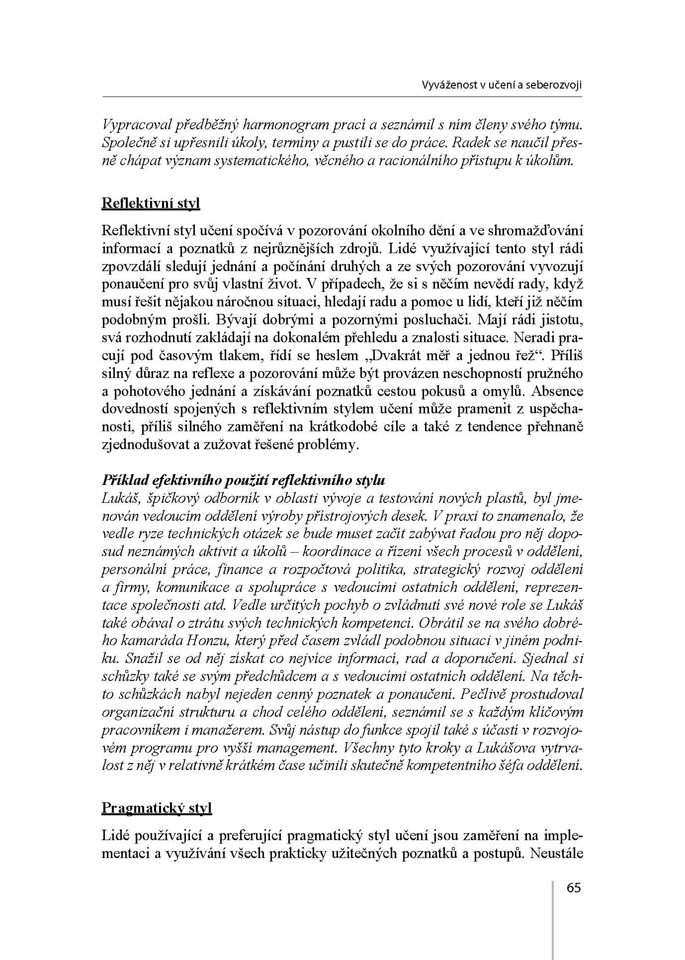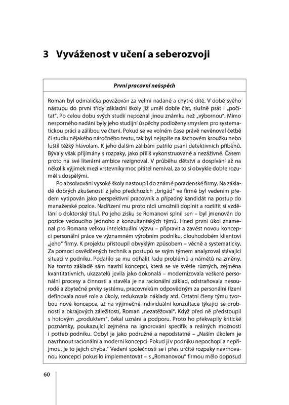 Přední vysokoškolští pedagogové představují koncepci vyváženého vedení lidí, která zdůrazňuje nutnost osvojit si soubor zdánlivě protikladných, avšak doplňujících se manažerských dovedností a jejich efektivního, mnohostranného uplatňování v praxi. Kniha je založená na koncepci versatilního vedení rozpracované Robertem E. Kaplanem a Robertem B. Kaiserem. Jejím cílem je pomoci manažerům nacházet odpovědi na otázky, jak přiměřeným způsobem uplatňovat své silné stránky a posilovat ty dovednosti, jež jsou rozvinuty nedostatečně. Kniha poskytuje vodítka pro nalezení vlastní cesty jak dospět k rovnováze ve využívání různých sociálních a manažerských dovedností. Pozornost je přitom věnována jak dovednostem spojeným se strategií a operativou (zde autoři prezentují rovněž výsledky svého posledního výzkumu), tak dovednostem souvisejícím s uplatňováním direktivního a podporujícího stylu vedení lidí (učení a rozvíjení pracovníků, komunikační dovednosti, ovlivňování, delegování, poskytování zpětné vazby, řešení konfliktů, vedení týmů, vedení porad). Kromě vlastního výkladu problematiky je součástí každé kapitoly úvodní manažerský příběh ilustrující příslušné téma a mající reálný základ a závěrečný sebehodnotící nástroj doplněný náměty na osobní rozvoj.