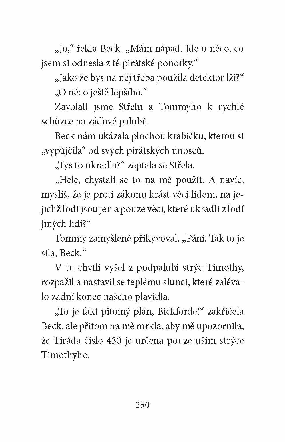 Piráti, hledání podmořských pokladů, detektivní pátrání, kdy vodítkem jsou zašifrované stopy, tajní agenti i překupníci, o tom všem je strhující vyprávění, k němuž nakreslila komiksové obrázky Back a dvojče Bick k nim připsal ironické poznámky.