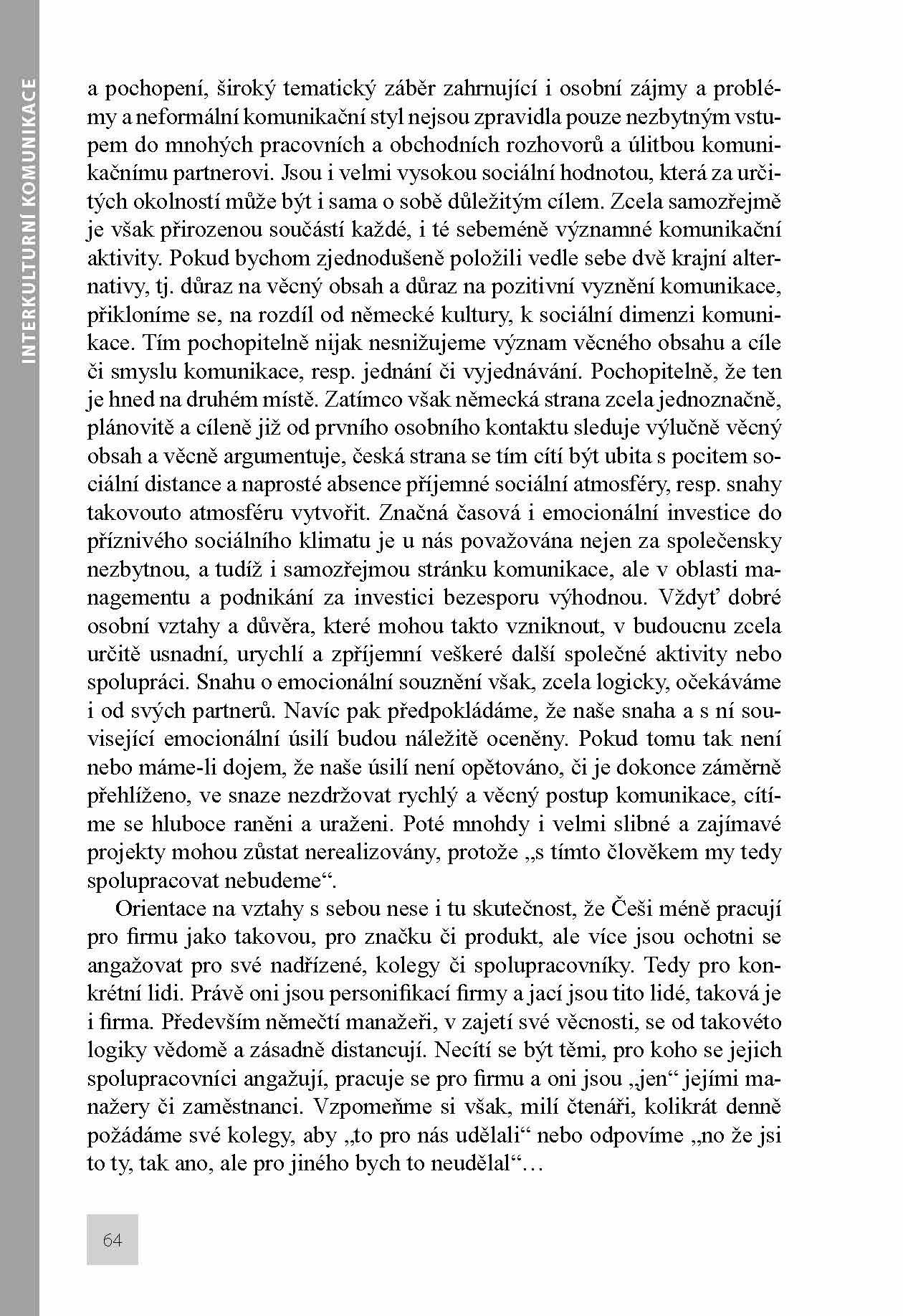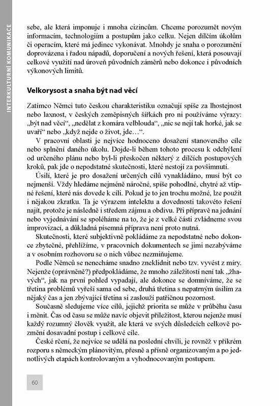 Komunikace v organizacích bývá často zdrojem mnoha potíží a příčinou řady problémů, z nichž se mnohdy vyvinou konflikty nezměrné šíře, někdy i obtížně řešitelné. Vzájemné nepochopení a nedorozumění, odlišné vidění a interpretace jednotlivých událostí, rozdílné způsoby řešení pracovních a osobních sporů – to je jen nepatrný výčet těchto obtíží, s nimiž se denně setkáváme a které výrazně ovlivňují výsledky společné práce. Při setkávání a střetávání se lidí různých národností, z různých zemí a různých kultur se pak tato komunikace stává mnohem náročnější a komplikovanější, nabývá „nových“ dimenzí a posouvá se do zcela jiné roviny. Abychom mohli případným nedorozuměním a konfliktům v interkulturní komunikaci a spolupráci předcházet, popř. je kvalifikovaně řešit, pokud k nim již dojde, je především nutné dokonale poznat nejen kulturní standardy vlastní země, ale i kulturní standardy země, s níž spolupracujeme, uvědomit si jednotlivé kulturní odlišnosti, poučit se z nich a správně je využít, aniž při tom porušíme základní etická pravidla.