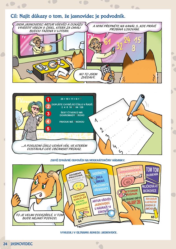 Mazaný detektiv Fox vás požádá o pomoc při řešení celkem 10 zapeklitých záhad, při jejichž vyšetřování budete muset luštit důmyslné rébusy, číst napínavé komiksy, kreslit obrázkové úkoly a na konci práce budete podrobeni rafinovaným testům.