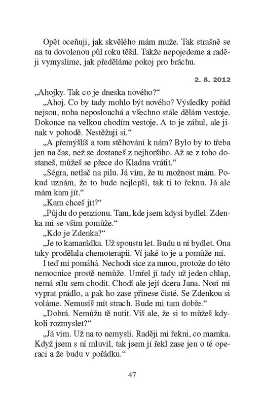 na chuť a v současnosti pomáhá své nemocné kamarádce sepsat její příběh o životě s rakovinou.