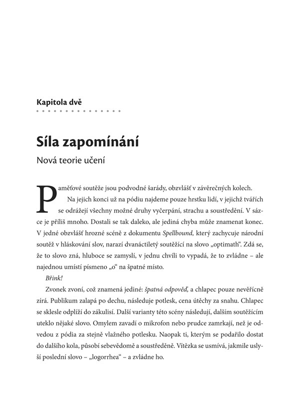 Ať už jste o správném učení slyšeli v životě cokoli, zapomeňte na to! Benedict Carey, oceňovaný vědecký reportér z New York Times, shrnul dosavadní poznatky z oblasti výzkumu lidské paměti a servíruje je čtenáři zároveň s praktickými a použitelnými radami.