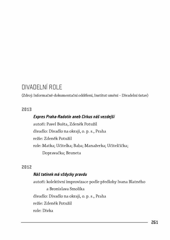 Ve své otevřené autobiografii odhaluje herečka mnoho ze svého soukromí, s láskou líčí společný život s Karlem Kachyňou a popisuje svoji hereckou kariéru se všemi zdary i nezdary. Ačkoliv by se mohlo zdát, že se na ni po smrti jejího manžela pozapomnělo, dál se objevuje v úspěšných filmech a seriálech. Její portrét proto dokreslují vzpomínky hereckých kolegů a dosud nezveřejněné fotografie jak ze soukromého, tak z profesního života.