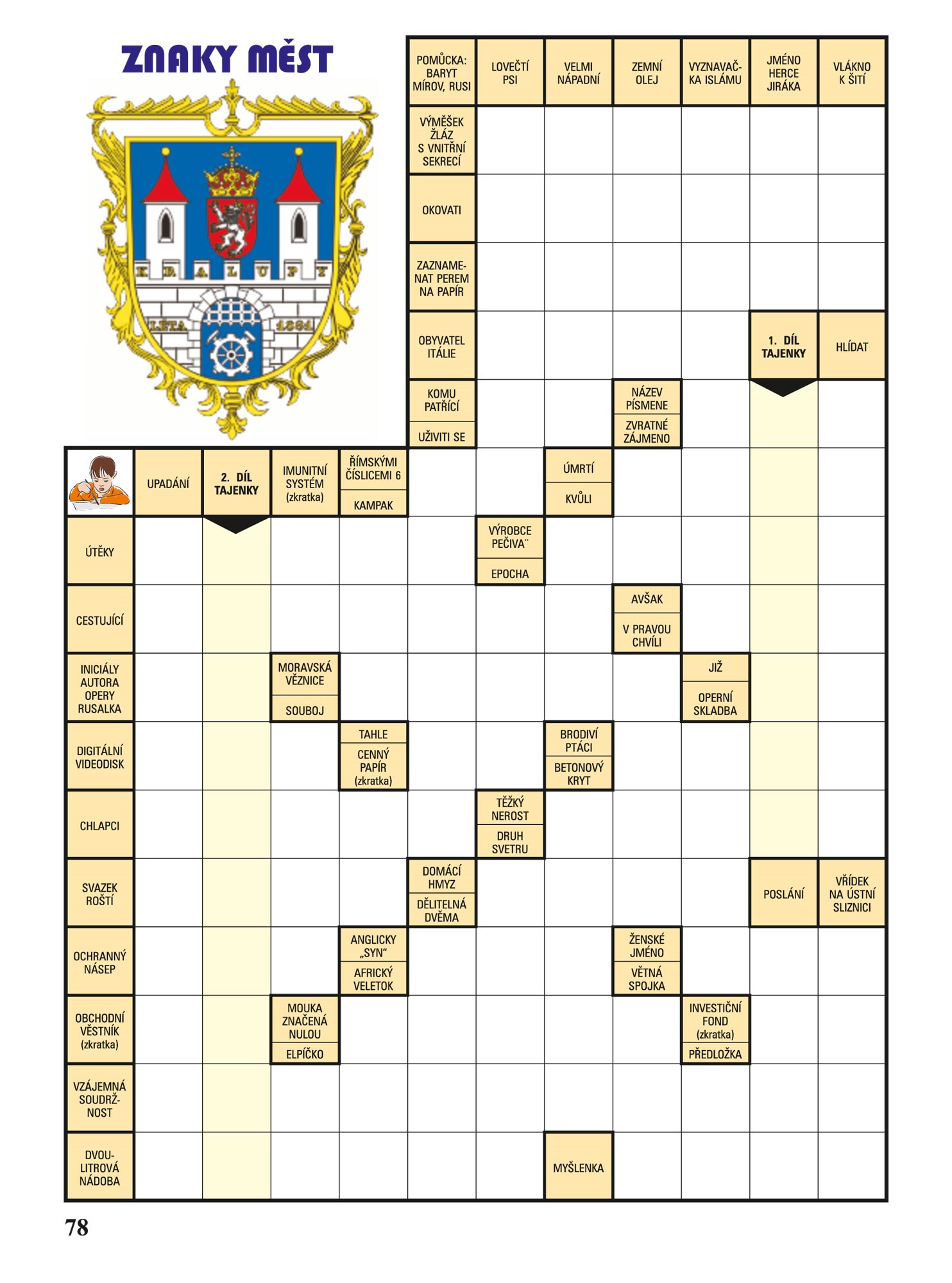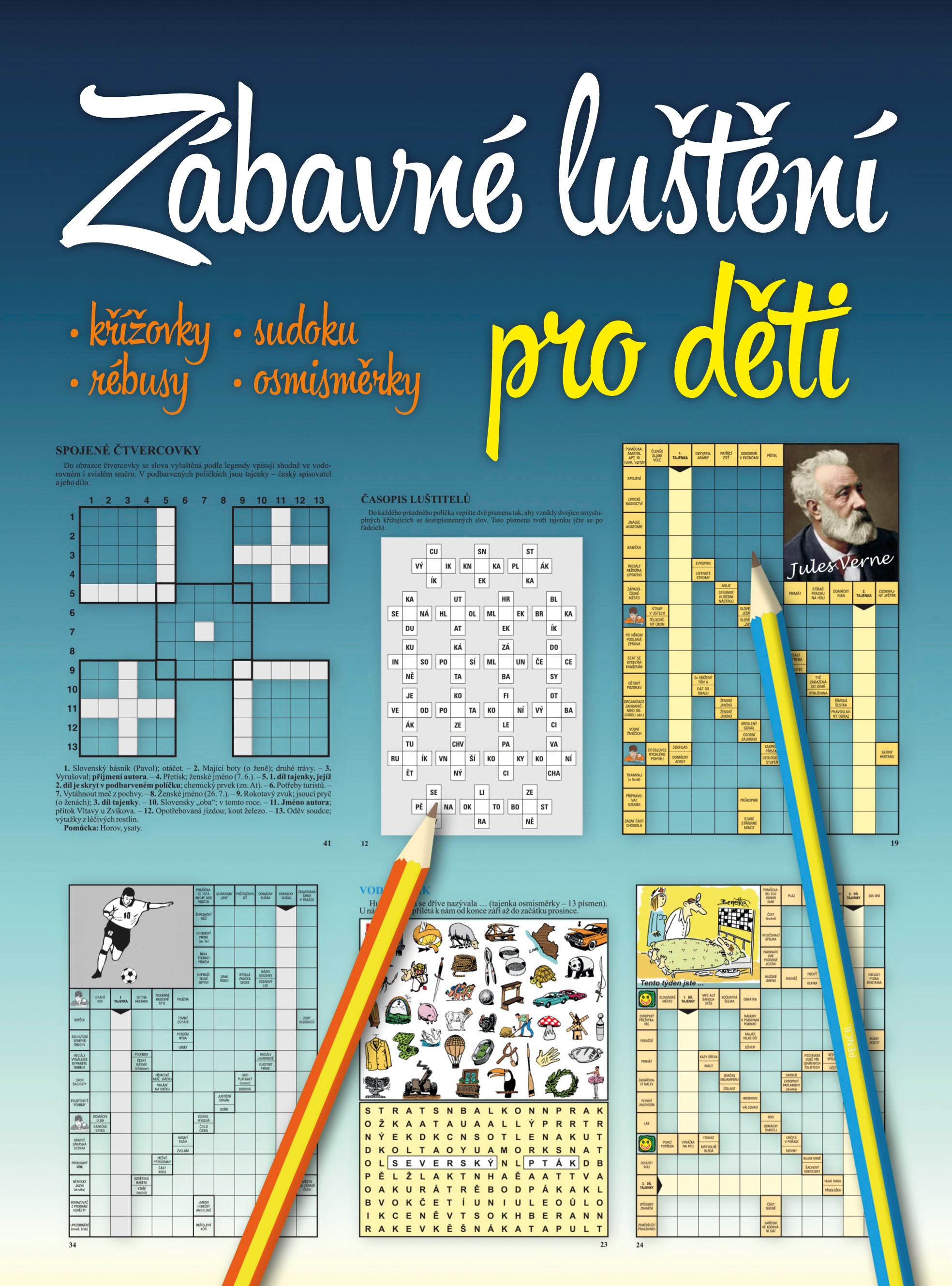 A je to tady! Zbrusu nová a ještě lepší kniha plná hravých křížovek, doplňovaček, rébusů, osmisměrek a dalších úloh, které prověří nabyté znalosti i základy logiky. Kluci a holky se už teď mohou těšit na spoustu hodin aktivní zábavy a luštění tajenek, které obsahují názvy večerníčků a filmů, jména známých herců, zpěváků i sportovců. Naučí se rovněž znaky našich měst a samozřejmě nechybí ani vtipy a poučná přísloví. Takže milé děti, připravte si tužky a vzhůru za zábavou. Přejeme vám mnoho zdaru a dobrou náladu při luštění.