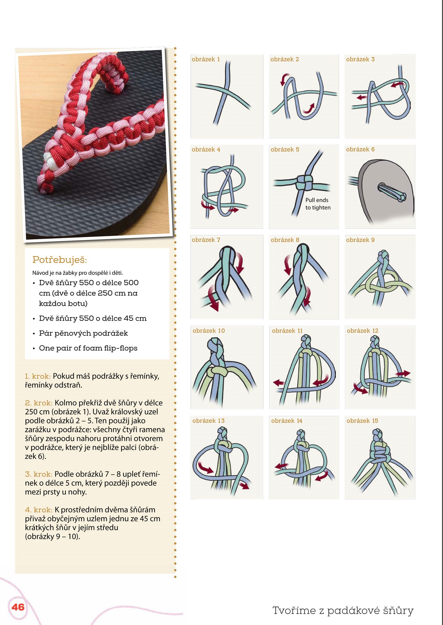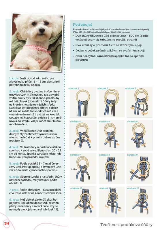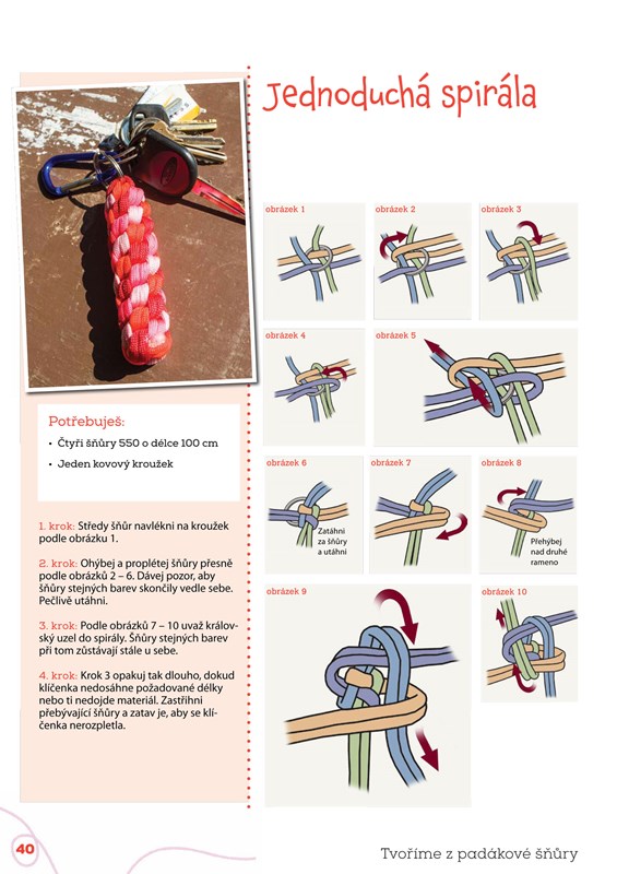 Pletení a vytváření z padákové šňůry je snadné a baví se jím děti, mládež i dospělí po celém světě. Snadno z ní vyrobíte nespočetné variace vkusných náramků, náhrdelníků i jiných šperků, pásků, klíčenek i dalších módních doplňků, obojky a vodítka pro vaše zvířecí miláčky, pouzdra i obuv. Díky této knize se srozumitelnými návody a praktickými radami brzy zazáříte s moderními doplňky na doma, na ven, do školy i na sportování.