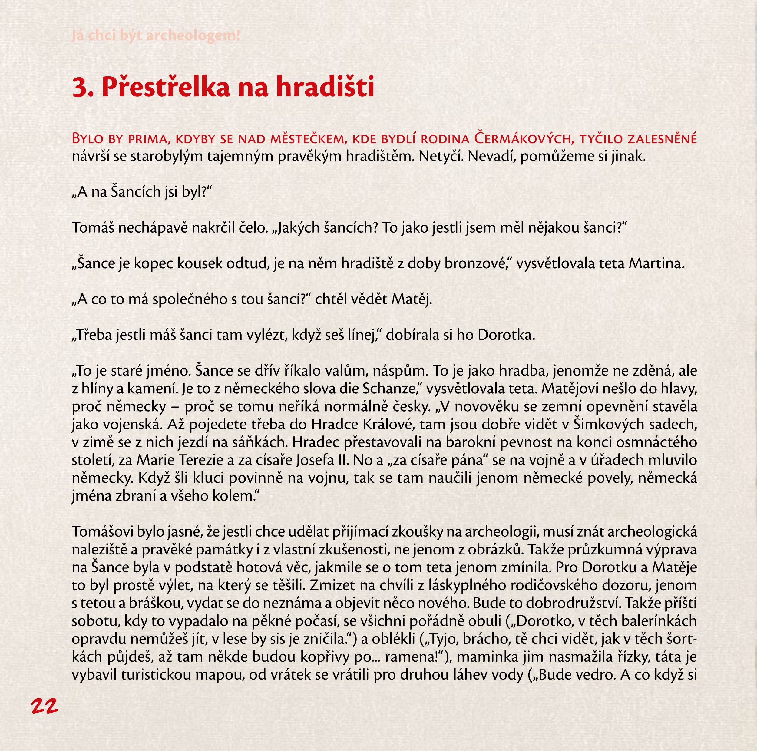 Tomáše všechny tyto otázky zajímají, a tak na ně hledá odpovědi. Naštěstí mu v tom pomáhá jeho teta archeoložka, stejně tak jako jeho sourozenci, dvojčata Dorotka a Matěj.
