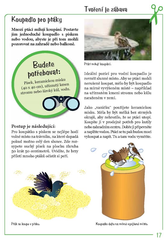 V přírodě je tolik věcí k objevování! Víte, podle čeho se pozná dudek chocholatý, kdy lze nejlépe pozorovat slavíka obecného a jak loví ledňáček říční ryby? Tato praktická knížka o přírodě předává zábavnou formou malým objevitelům informace o světě tuzemských ptáků. Naučí vás ptáky nejen rozlišovat, ale prozradí vám také, kde žijí a upozorní na zvláštnosti chování. Formát knihy vybízí k tomu, abyste si ji s sebou přibalili na výlet. Poznávejte přírodu! Staňte se jejími kamarády.