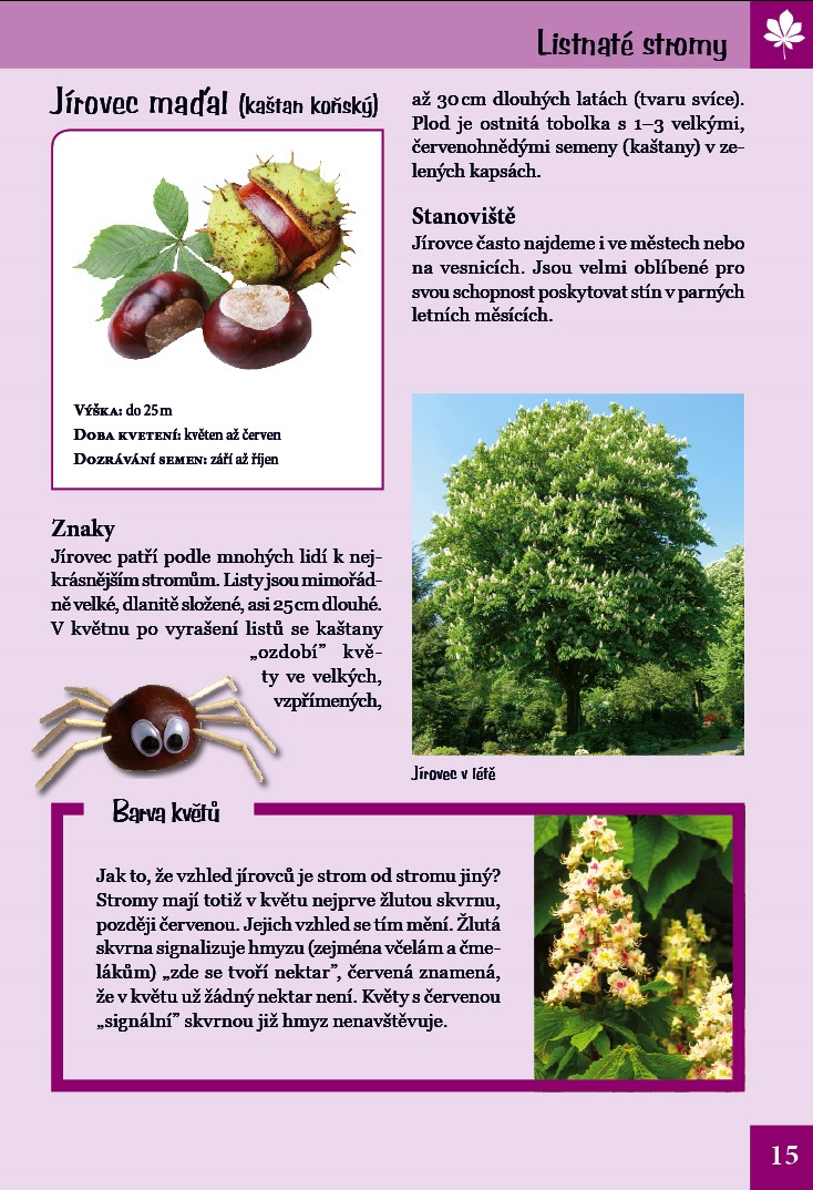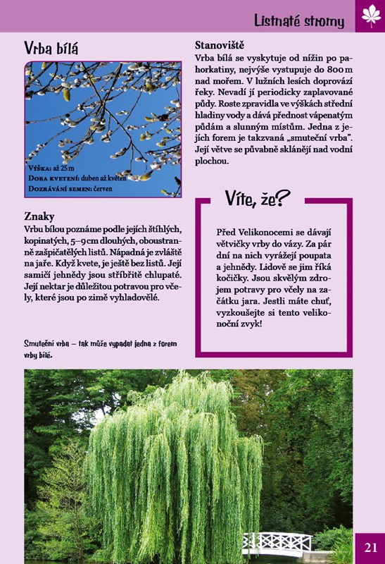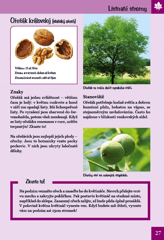 V přírodě je tolik věcí k objevování! Víte, jak vypadají například semena javoru, jakého věku se mohou dožít modříny a kde roste dřišťál? A co kdybyste si vytvořili týpí z vrbového proutí, takový perfektní úkryt pro vaše hry? Tato praktická knížka o přírodě předává zábavnou formou malým objevitelům informace o světě stromů a keřů. Naučí vás je nejen určovat, ale prozradí i mnoho zajímavého o jejich vlastnostech a stanovištích. Formát knihy vybízí k tomu, abyste si ji s sebou přibalili na výlet. Poznávejte přírodu! Staňte se jejími kamarády.