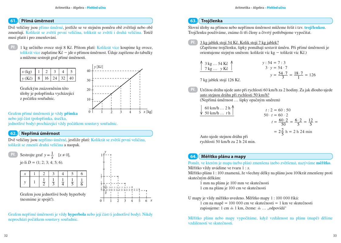 Kompletní přehled učiva matematiky probírané na 2.stupni ZŠ a v nižších ročnících víceletých gymnázií v jedné stručné učebnici!