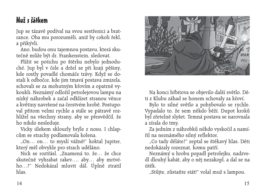 Staň se členem Klubu záhad! Pomocí superlupy objasni s ostatními členy záhadu zloděje mrtvol. Po škole se šíří fáma! Jupiterův učitel se prý v noci potlouká po hřbitově a krade části mrtvých těl, ze kterých sestavuje příšery jako Frankenstein. Je něco takového možné? Jedná se o fámu nebo ne? Klub záhad zahajuje pátrání a ty můžeš být při tom!