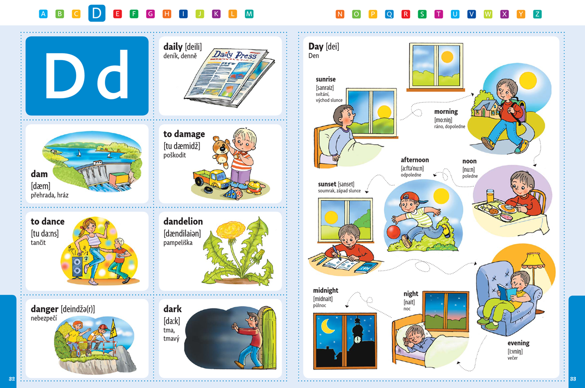 Obrázkový slovníček je určen pro děti, které se právě začínají učit angličtinu. Spojení slovíčka s ilustrací napomáhá ke snadnějšímu zapamatování, a proto je slovníček vhodný i pro děti, které ještě neumějí číst. Slovíčka jsou řazena abecedně, jsou doplněna tematickými stránkami a na konci je rejstřík.