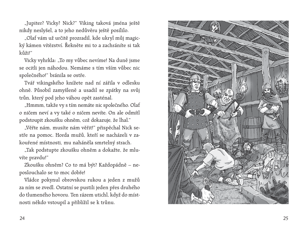 Vikingskému knížeti Svenovi kdosi ukradne magický kámen, který mu přináší vítězství v boji. A přesně tehdy přistávají mezi Vikingy Jup, Vicky a Nick. Pochopitelně padne podezření právě na ně, na záhadné "cizince".