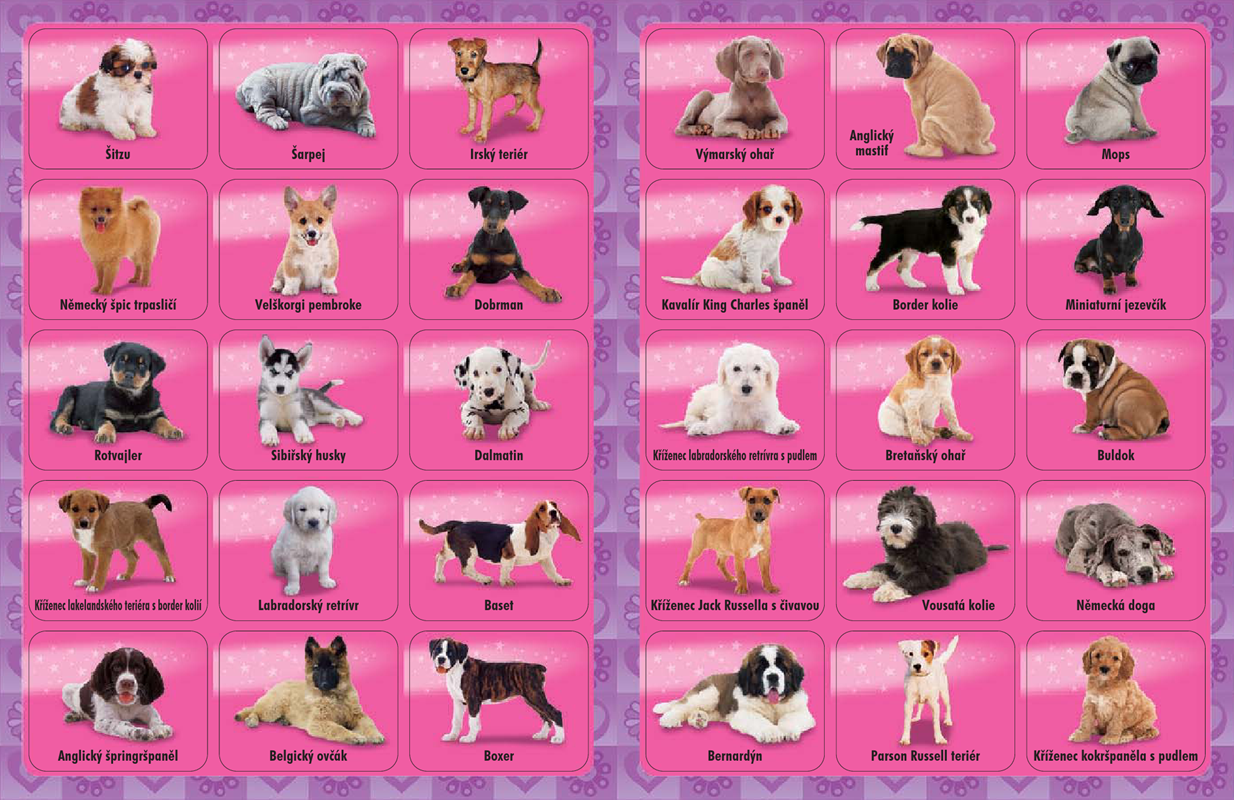 Sešit obsahuje i 7 miniplakátků s obrázky štěňat.