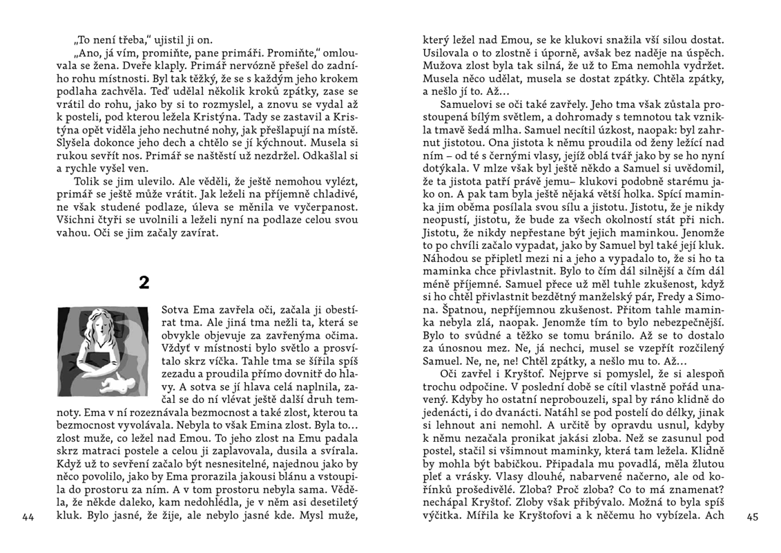 Rodiče, kteří se dosud neprobudili, jsou umístěni do velkého sálu v nemocnici. Zdejší prostředí nahání dětem strach, zároveň je však neodolatelně přitahuje. Tuší totiž, že se tudy dá dostat do světa „na druhé straně“. Kryštofovi, Emě, Kristýně a Samuelovi, čtyřem dětským hrdinům hledajícím pravdu, se to podaří. Ale jenom malý Samuel má klíč k celému tajemství na dosah ruky. Zachrání zbývající unesené děti? A bude svět ještě někdy stejný jako dřív?