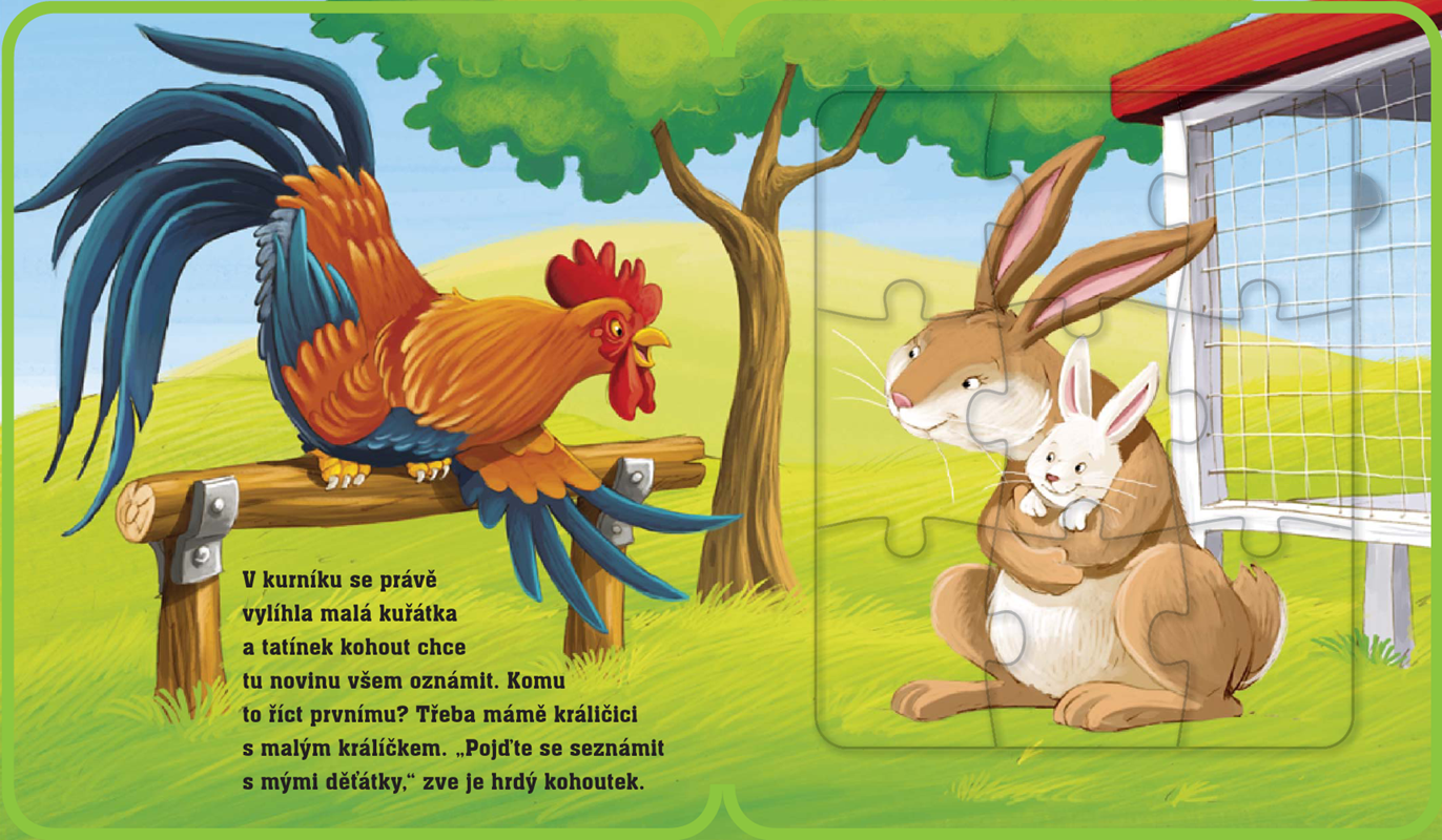 Barevné leporelo zavede děti na statek, kde se právě narodila malá kuřátka. Poznají všechna zvířátka, která zde žijí, a s veselými puzzle zažijí spoustu zábavy.