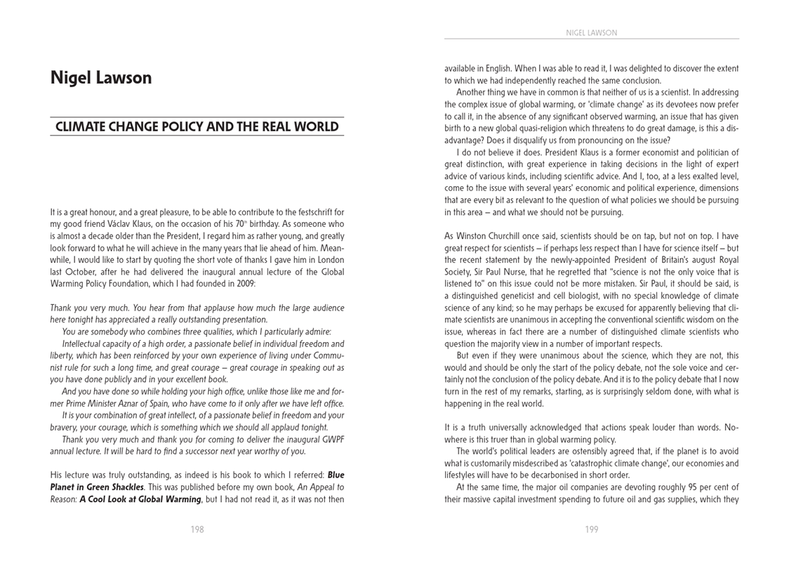 “To Václav Klaus” is a festschrift published on the occasion of the 70th birthday of Václav Klaus, the President of the Czech Republic. It consists of more than 50 essays written by authors from 15 countries around the world – distinguished politicians, economists, philosophers, representatives of significant think tanks and companies, and other personalities of public life and science.
