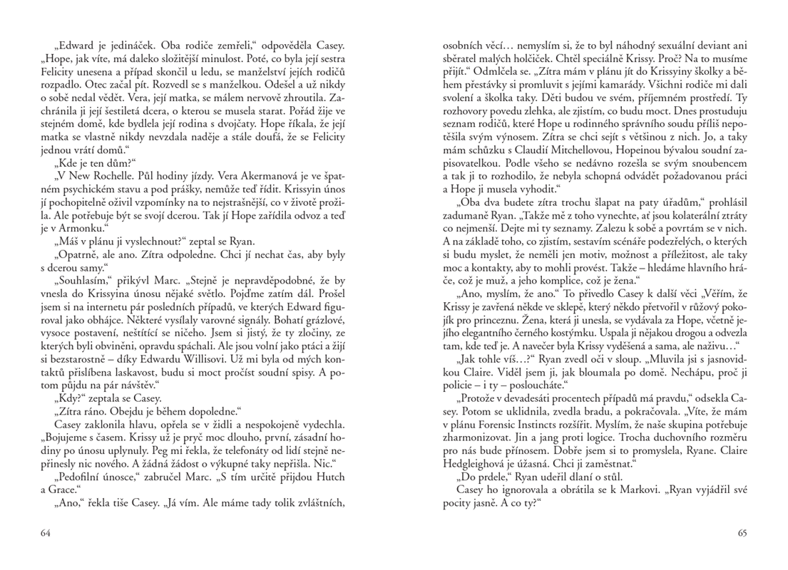 Mají ty dva únosy něco společného? Kdo a proč pronásleduje její rodinu? Když selžou klasické metody vyšetřování, obrátí se Hope na forenzní psycholožku, jasnovidku a bývalého agenta FBI. Čas běží a ne všechny stopy vedou k cíli...