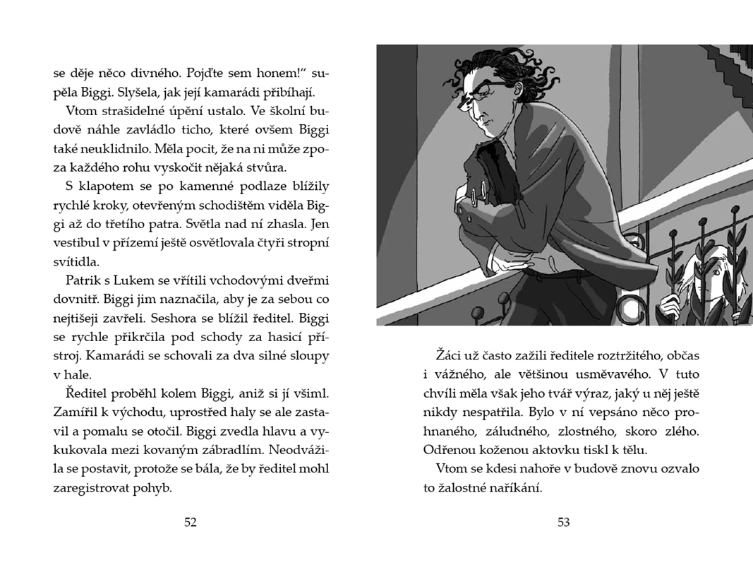 Kamarádům z Klubu Tygrů se dostane do ruky záhadný vzkaz, který upozorňuje na podivné půlnoční setkání ve škole, kterou navštěvují. Jindy tak nudná budova se stává dějištěm záhadných událostí. Vypadá to, že škole hrozí zbourání a že v ní dokonce straší! Dostanou se Patrik, Biggi a Luk na stopu drzým lupičům? A co má za lubem neznámá stará dáma, která se nečekaně objeví na scéně?