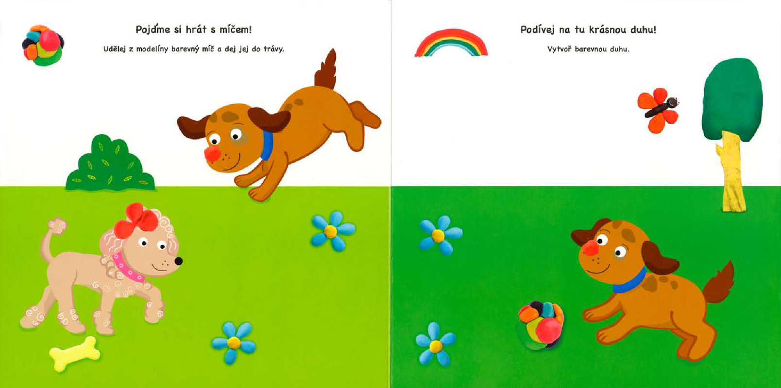 Hrajte si a modelujte společně s vašimi dětmi. Na každé stránce je vzor, podle kterého obrázek v knížce doplníte. Barevný příběh o štěňátku si poté převyprávějte společně.