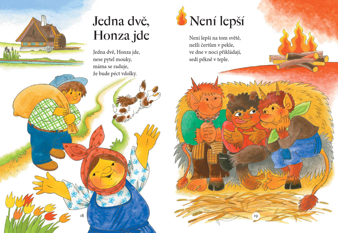 Nejmilejší česká lidová říkadla, která by mělo znát každé dítě, doprovází půvabné ilustrace Edity Plickové. Princeznička na bále Houpy, houpy Šel Janeček Foukej, foukej větříčku Hody, hody Jedna dvě, Honza jde … a další veselá říkadla.