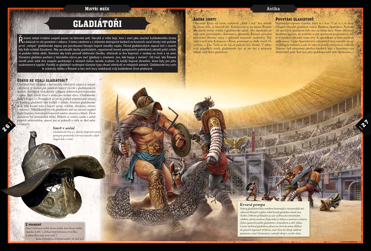 Podívejte se do starověké Sparty, navštivte gladiátorské zápasy v římském Koloseu, s Alexandrem Velikým se vydejte dobývat svět. Dozvěďte se podrobnosti ze života japonských samurajů, Čingischánových nájezdníků či divokých Vikingů. S rytíři se vydejte na křížové výpravy do Svaté země, seznamte se s nejslavnějšími vojevůdci v dějinách vojenství.