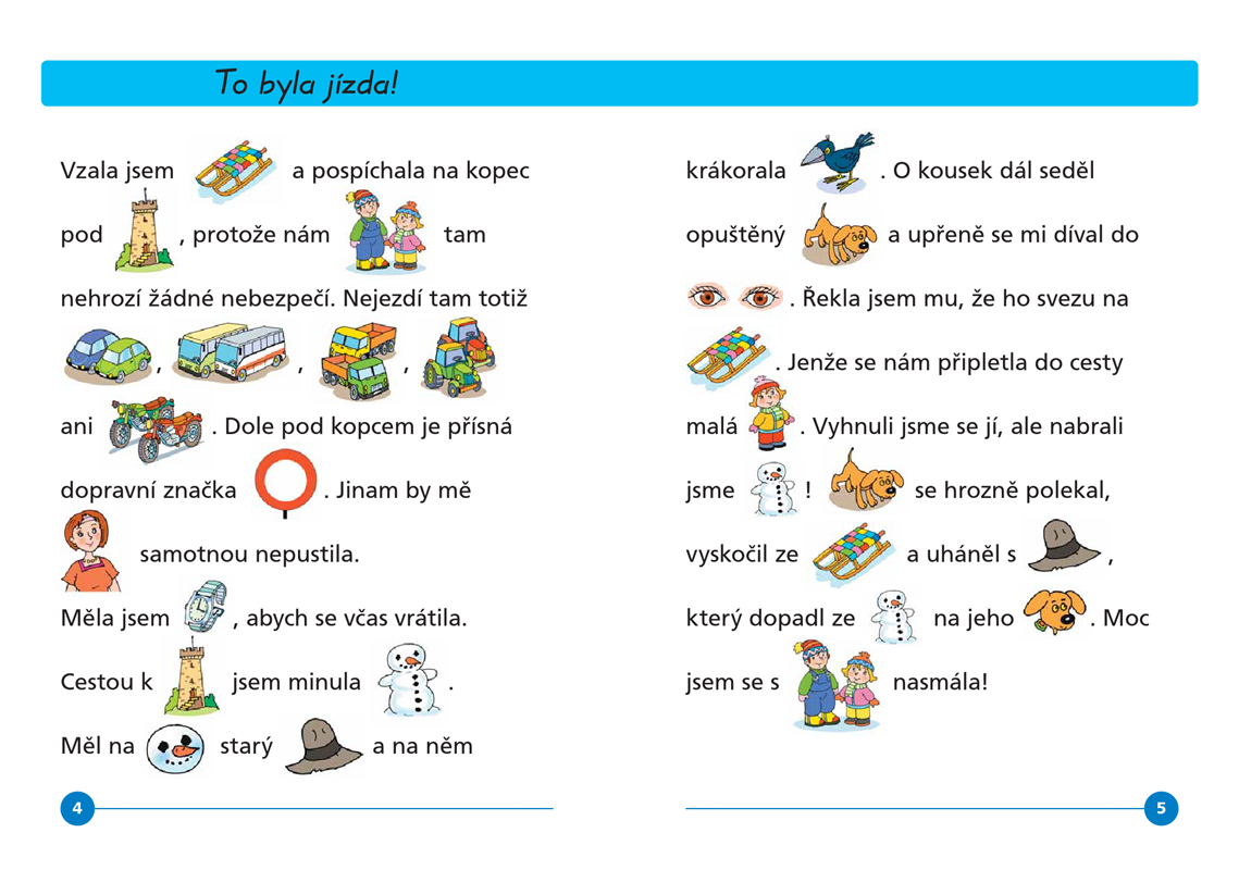 Rozvíjejte pomocí krátkých příběhů a pohádek jeho vnímání a slovní zásobu. Veselé obrázky, které nahrazují některá slova v textu, udrží pozornost a čtení bude zábava. A ti, kteří ještě písmenka neumí, mohou číst pomocí obrázků.