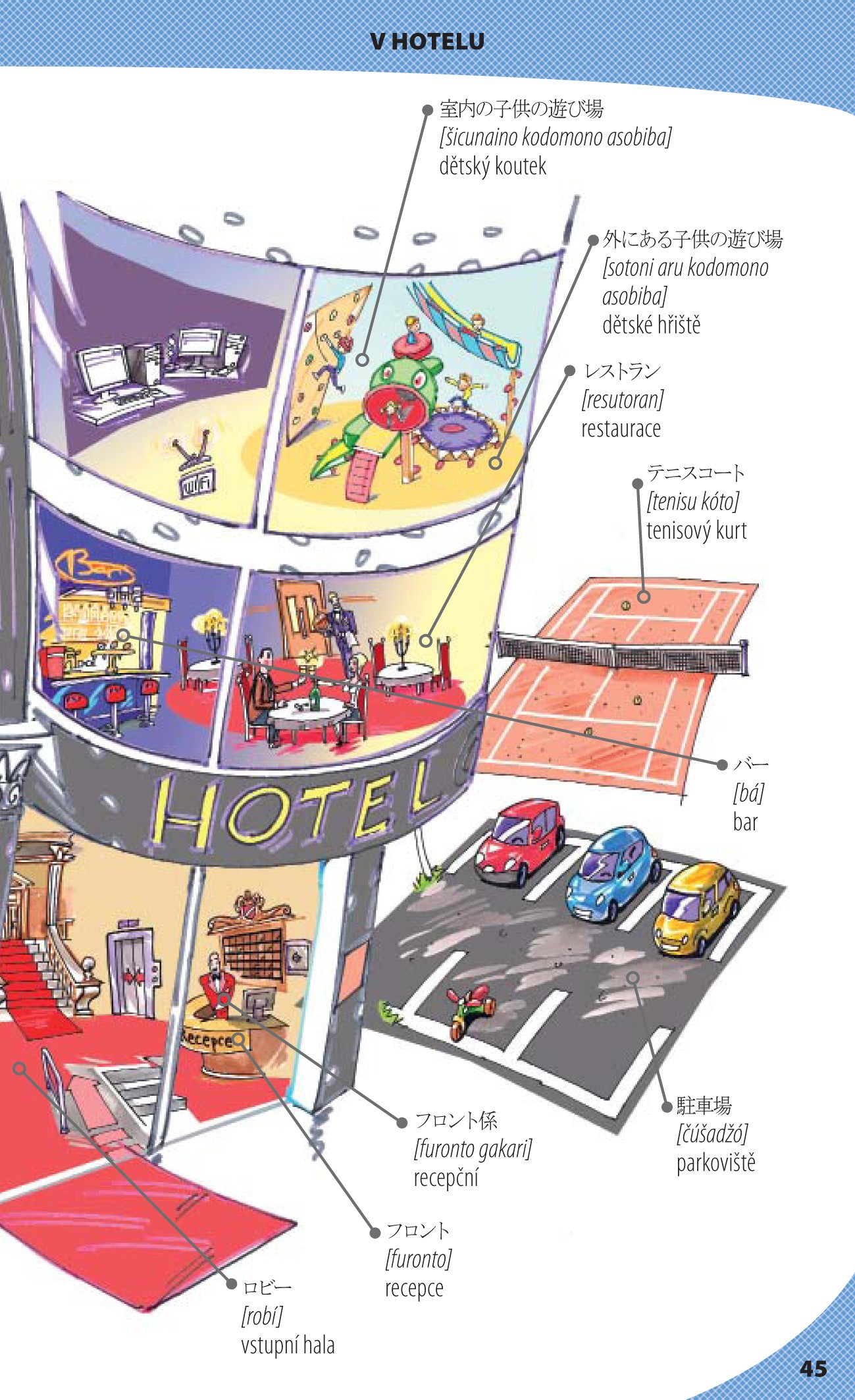 Šikovný pomocník obsahuje spoustu ilustrací znázorňujících situace, které musejí turisté často řešit: na letišti, na nádraží, v hotelu, v obchodech, v lékárně, na policii atd. Vedle ilustrací jsou uvedena slovíčka s výslovností, takže si je snadno přečtete a zapamatujete.