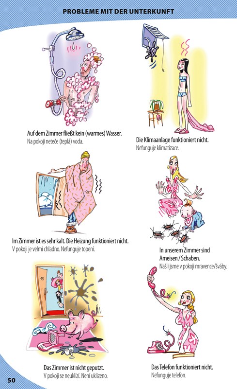 Šikovný pomocník obsahuje spoustu ilustrací znázorňujících situace, které musejí turisté často řešit: na letišti, na nádraží, v hotelu, v obchodech, v lékárně, na policii atd. Vedle ilustrací jsou uvedena slovíčka s výslovností, takže si je snadno přečtete a zapamatujete.
