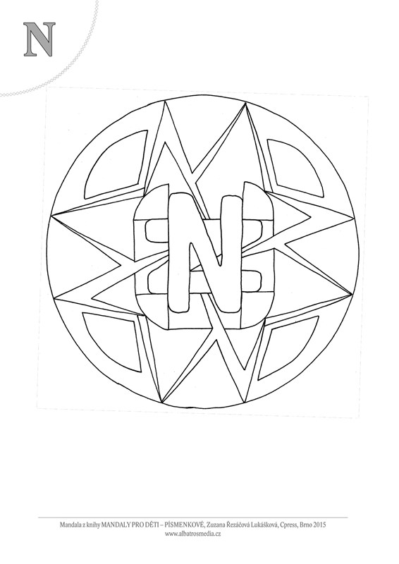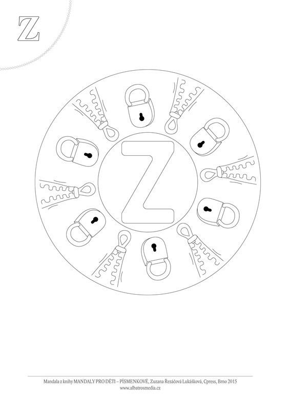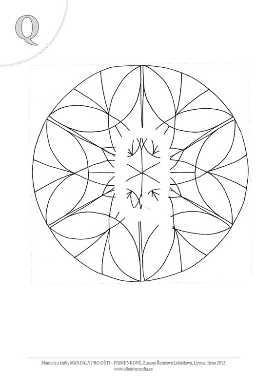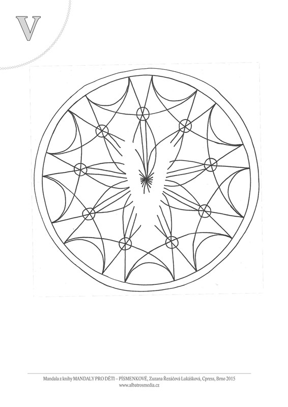 Více než 100 mandal v této publikaci je rozděleno do tří skupin. V první části knihy naleznete mandaly s písmenkem uprostřed a kolem něj obrázky zvířátek nebo věcí na toto písmenko začínající. Ve druhé skupině jsou klasické mandaly s písmenkem uprostřed a třetí část podporuje dětskou představivost - písmenko je vždy skryté mezi obrazci. Každá stránka je opatřena perforací, takže po vybarvení si ji můžete bez problémů vytrhnout a pověsit v dětském pokojíčku.