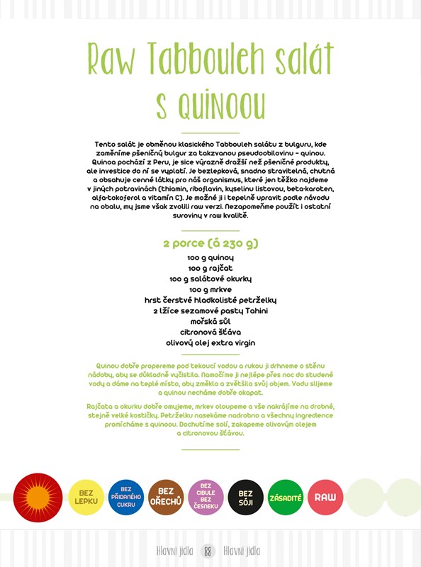 Kuchařka pokrývá kompletní celodenní jídelníček, nabízí vyváženou zdravou výživu, a navíc obsahuje slovníček, který vám pomůže vyznat se v nabídce exoticky znějících ingrediencí.