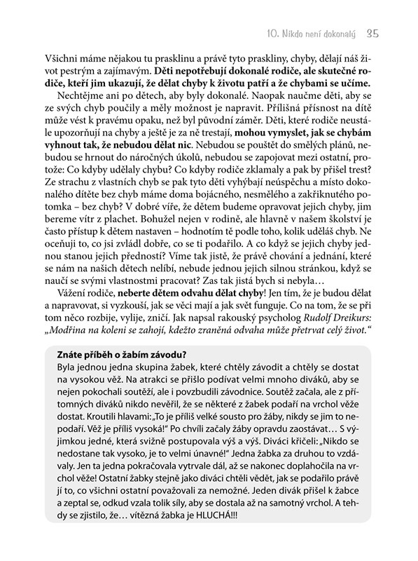 Michaela (30 let, maminka dvou kluků): Knížku jsem přečetla asi na třikrát a pořád jsem nebyla u konce… Fascinovalo mě, jak se do takové na pohled tenké knížečky mohlo vejít tolik informací – a co je hlavní, opravdu důležitých! Příběhy ze života, a nejen ty, tomu dodávají humorný náboj. Asi nejvíc mi přinesla kapitolka o trestech – zkoušíme praktikovat důsledky v praxi, tak uvidíme.