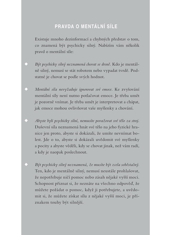 Pokud patříte mezi ty, kdo odpoví „ano“ na některou z těchto otázek, pak vězte, že nikdy není pozdě na změnu k lepšímu. Znásobíte-li svou mentální sílu, lépe zvládnete vypjaté situace a budete celkově spokojenější. Zvýšení mentální síly vám pomůže naplno rozvinout potenciál, ať už toužíte být skvělým rodičem, zlepšit fungování v práci anebo sportovní výkonnost.