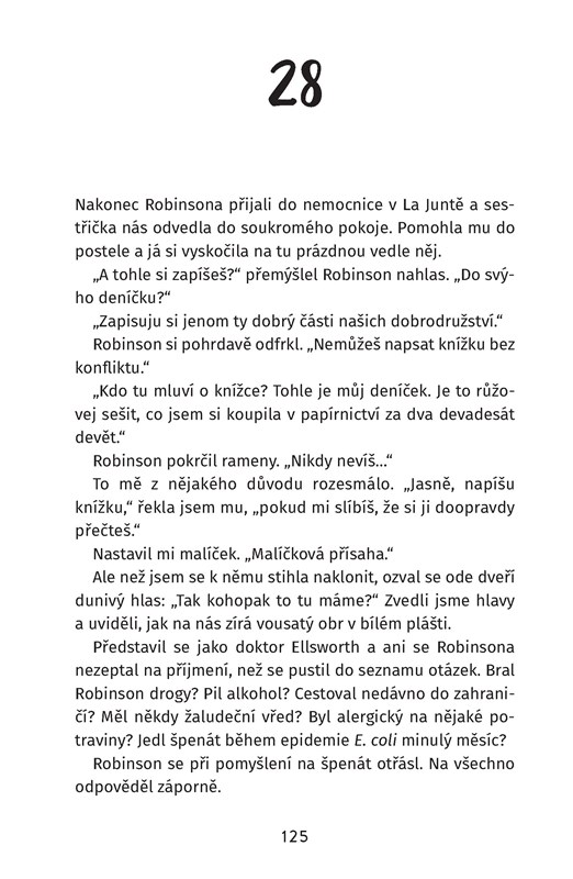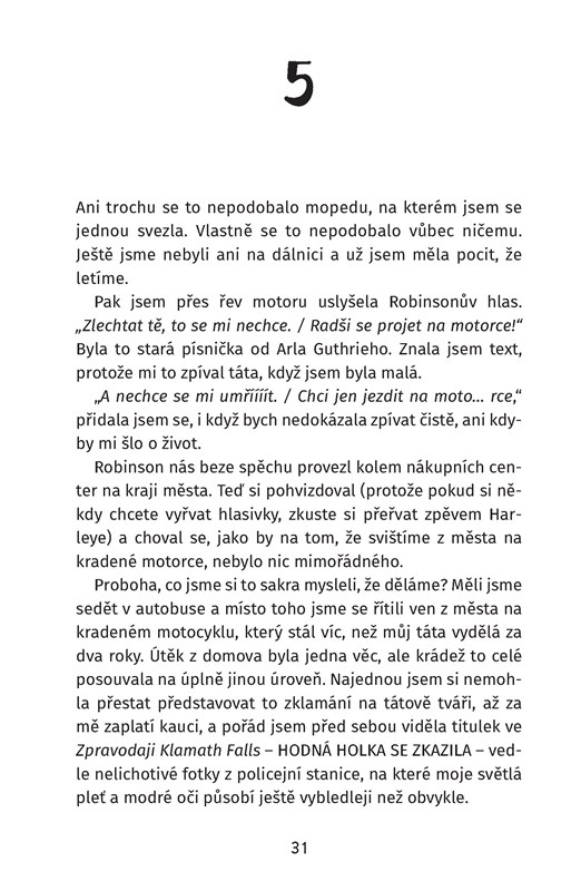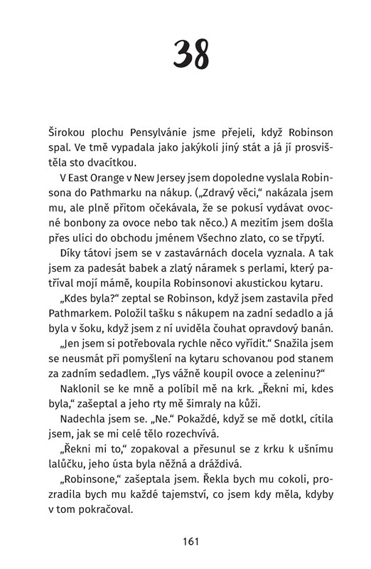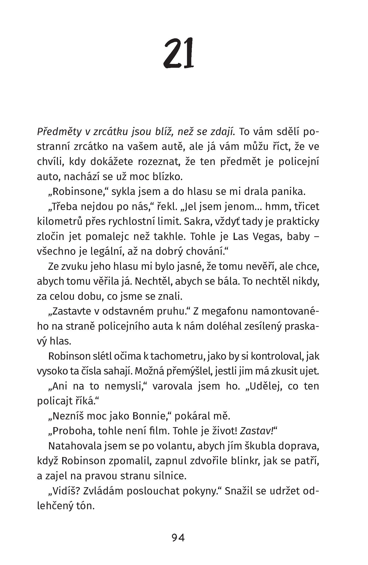 Axi Mooreová je ve všech ohledech hodná holka. Pilně studuje, nedělá žádné průšvihy a hodně čte. Ale jednoho dne se rozhodne, že nějaké to pravidlo přece jen poruší… uteče z domova, ze svého do puntíku naplánovaného světa, a vydá se na road trip. A tím překvapí nejen sebe, ale také svého kamaráda Robinsona, kterého vezme s sebou. Protože co může být více vzrušující než cesta napříč Státy se svou životní láskou? Axi ale zjistí, že v životě, stejně jako na cestě, sem tam narazíte na překážku, před níž už se vám bohužel utéct nepodaří…