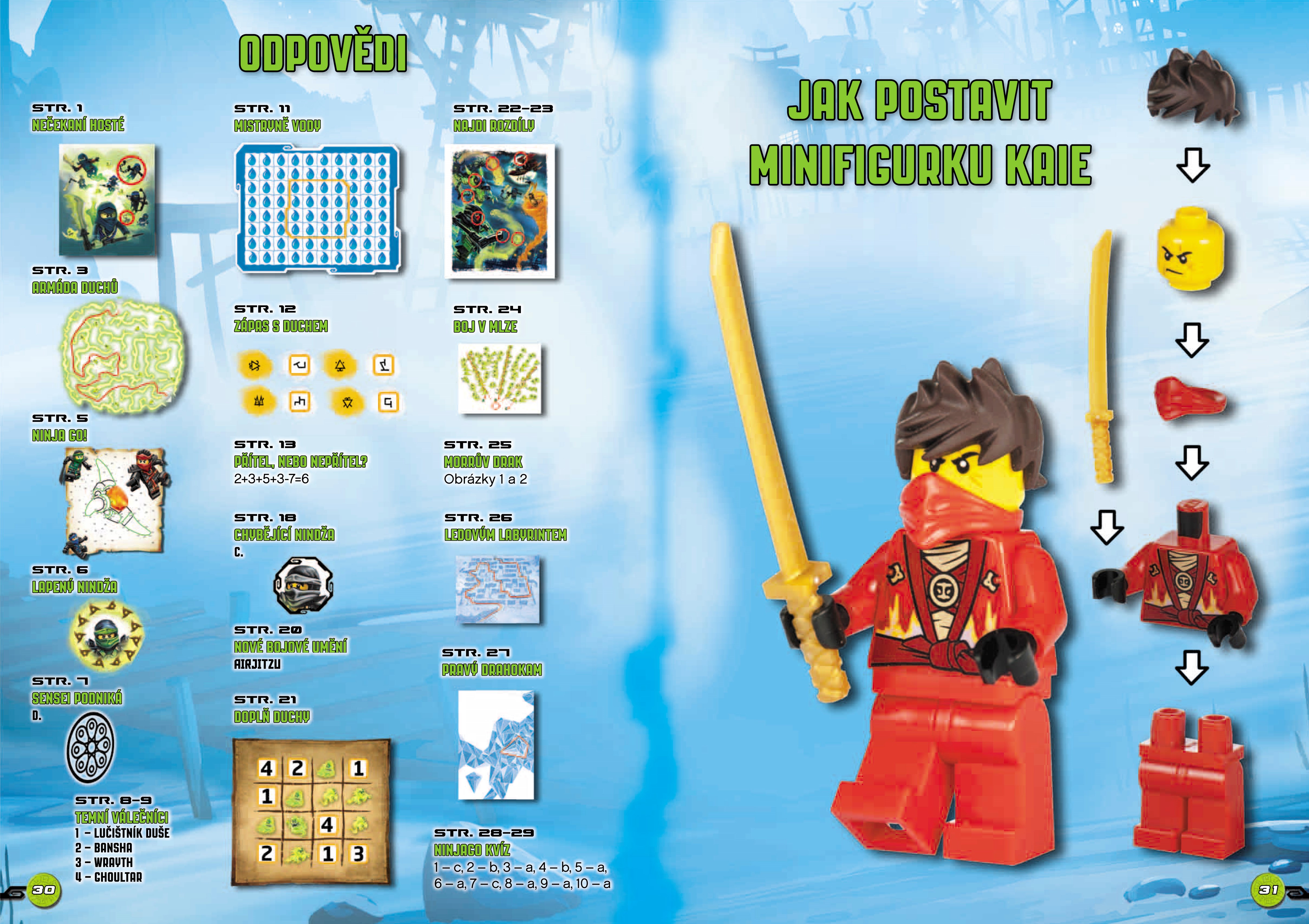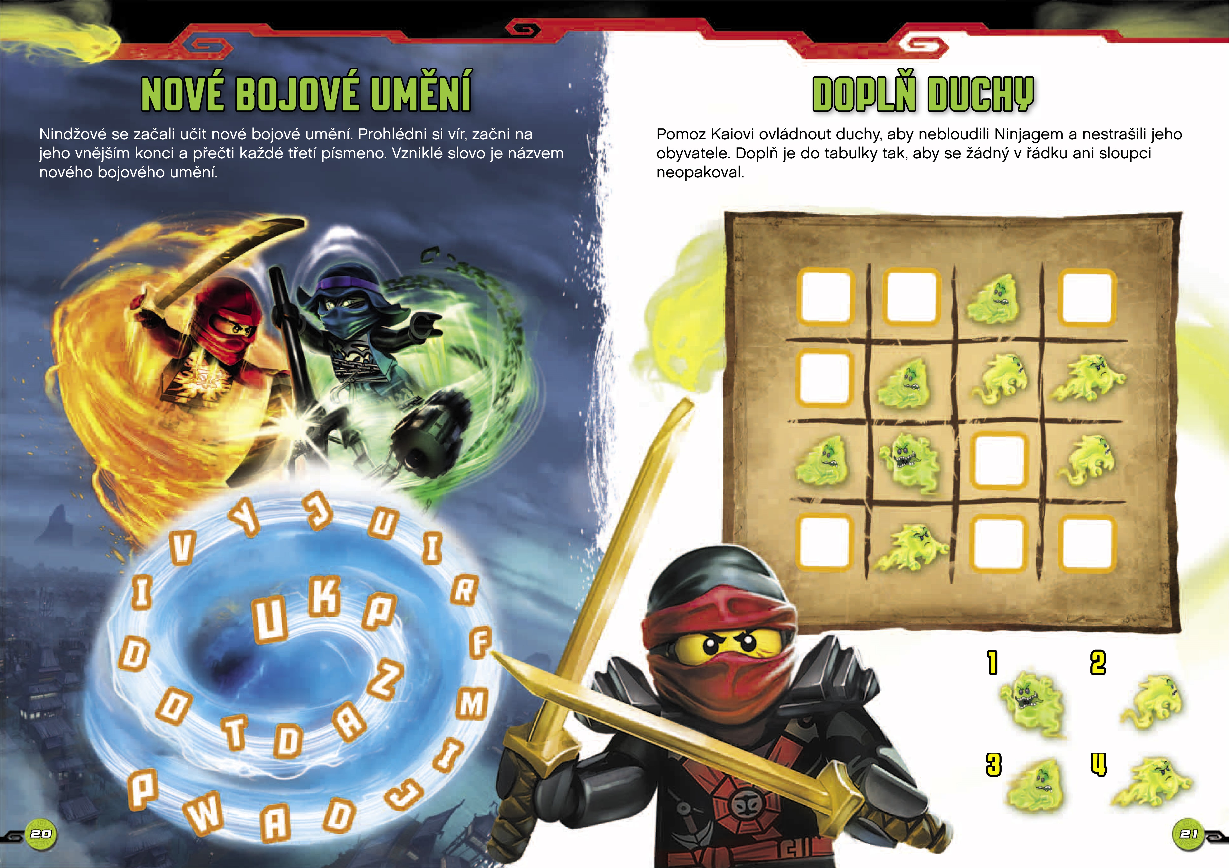 Bojechtiví duchové napadli Ninjago z jiné dimenze! Jejich velitel Morro chce dobýt celé království. Nindžové jsou připravení postavit se temným návštěvníkům. Jak je však porazí, zvláště když se duchové zmocnili jednoho z nich? Prožij společně s nindži velké dobrodružství, přečti si příběh a odpověz na otázky. V knížce na tebe čeká spousta zábavných aktivit a na obalu minifigurka Kaie.