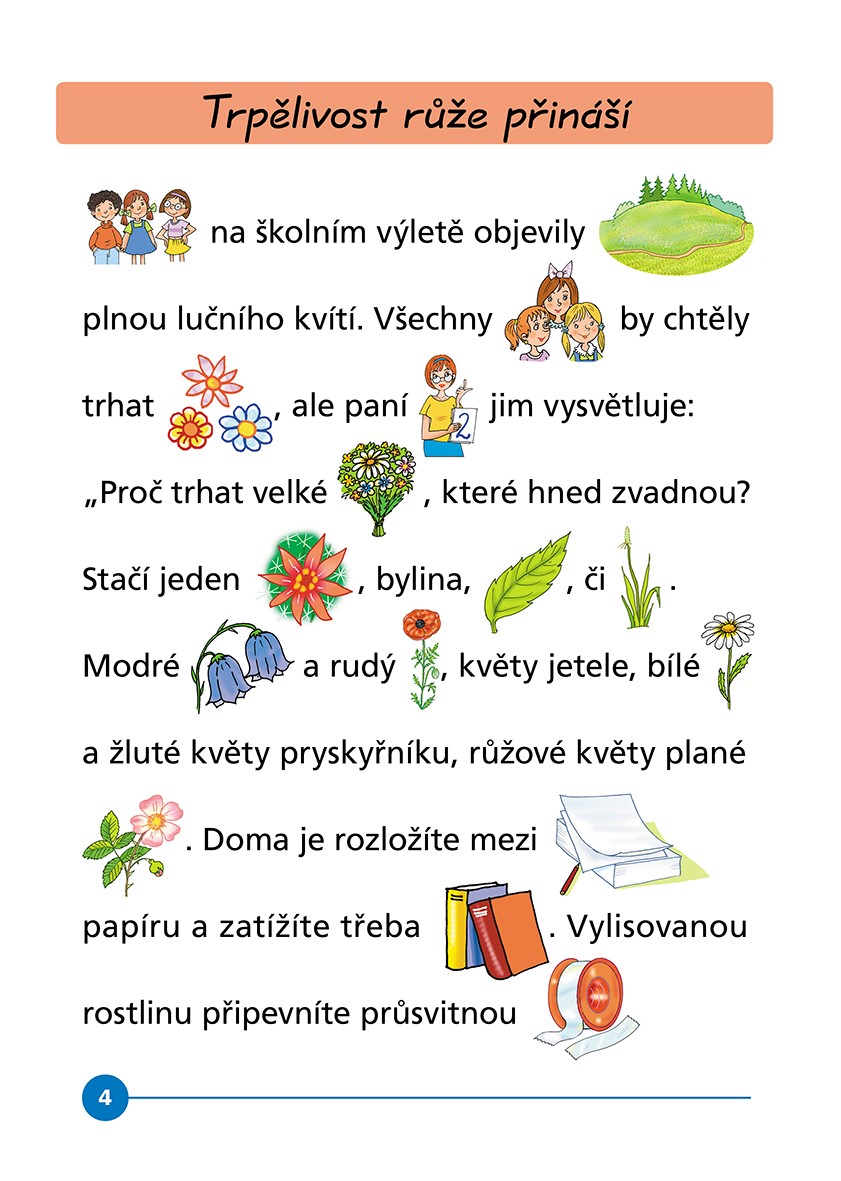 Začínající čtenáři mohou procvičovat čtení a ti, kteří písmenka ještě neznají, mohou „číst“ pomocí obrázků.