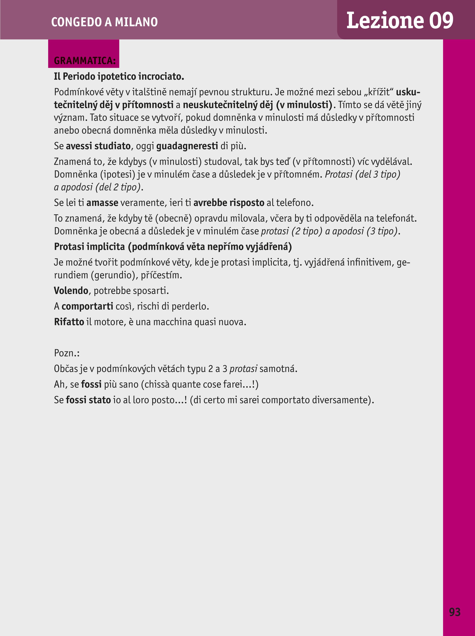 Konverzační příručka je určena středně pokročilým studentům úrovně B2, ale inspiraci, užitečné fráze, slovní zásobu i gramatiku v ní mohou nalézt i studenti pokročilí nebo a úplní začátečníci. Je vybavena poměrně detailní průpravou k výslovnosti, srovnávacími memorizačními metodami a audio materiálem. Pokročilejším budou prospěšné vysvětlivky některých výrazů pod dialogy (ve stylu výuky výkladových monolinguálních slovníků) a možná ocení i přiloženou první kapitolu z Manzoniho Snoubenců pro nácvik čtení.