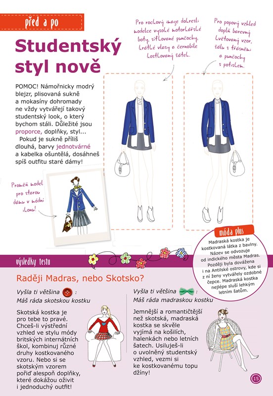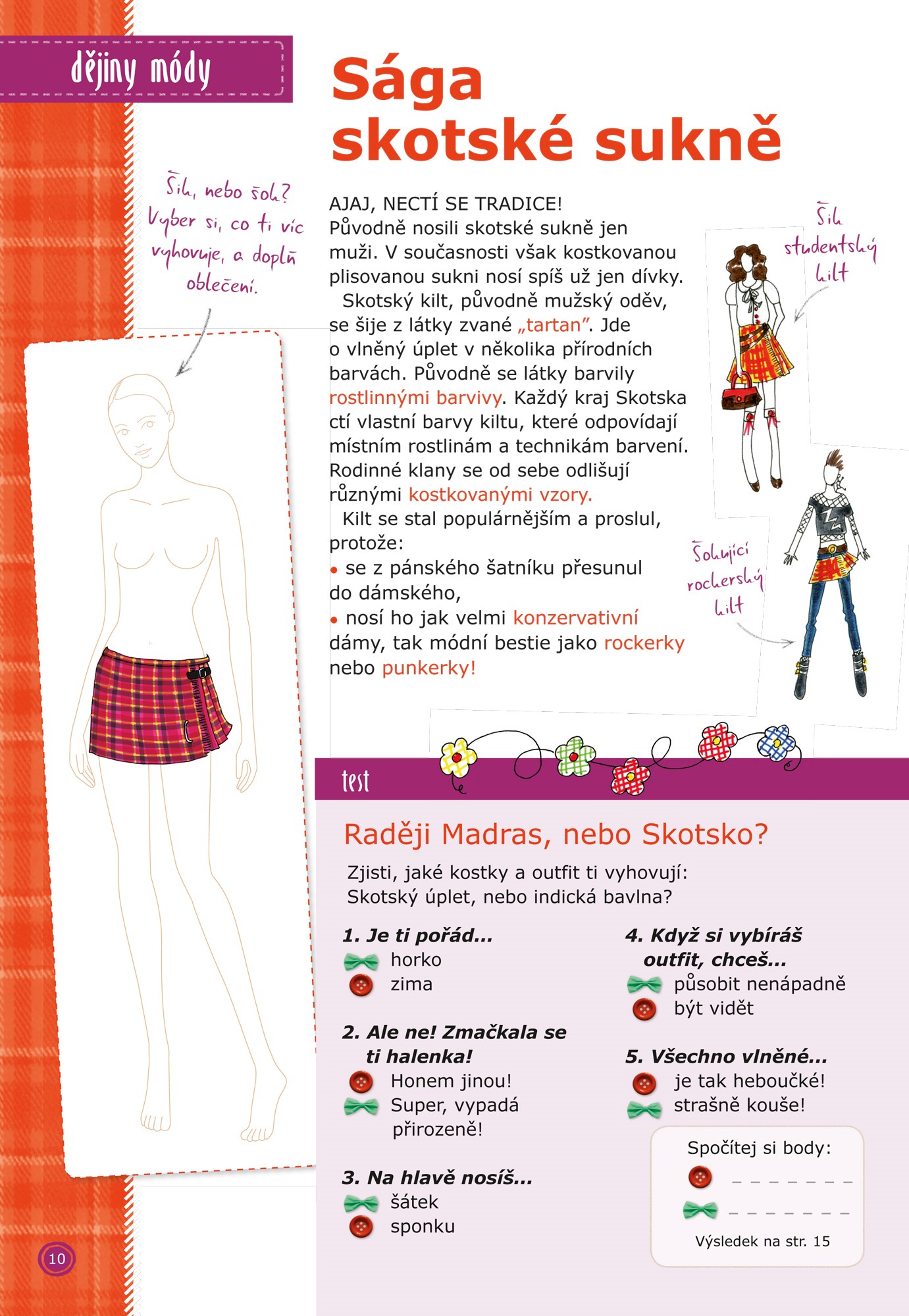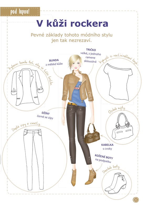 Pracovní sešit pro módní stylistky a návrhářky se spoustou rad, informací a nápadů Ti pomůže najít samu sebe. Chceš vypadat jako křehká víla nebo hrdinka komiksu? Seš spíš rockerka nebo popová hvězda? Slušel by ti etno styl? Testy ti pomohou určit k jakému módnímu typu patříš a naučíš se i líčit a zvolit správný účes nebo doplněk.