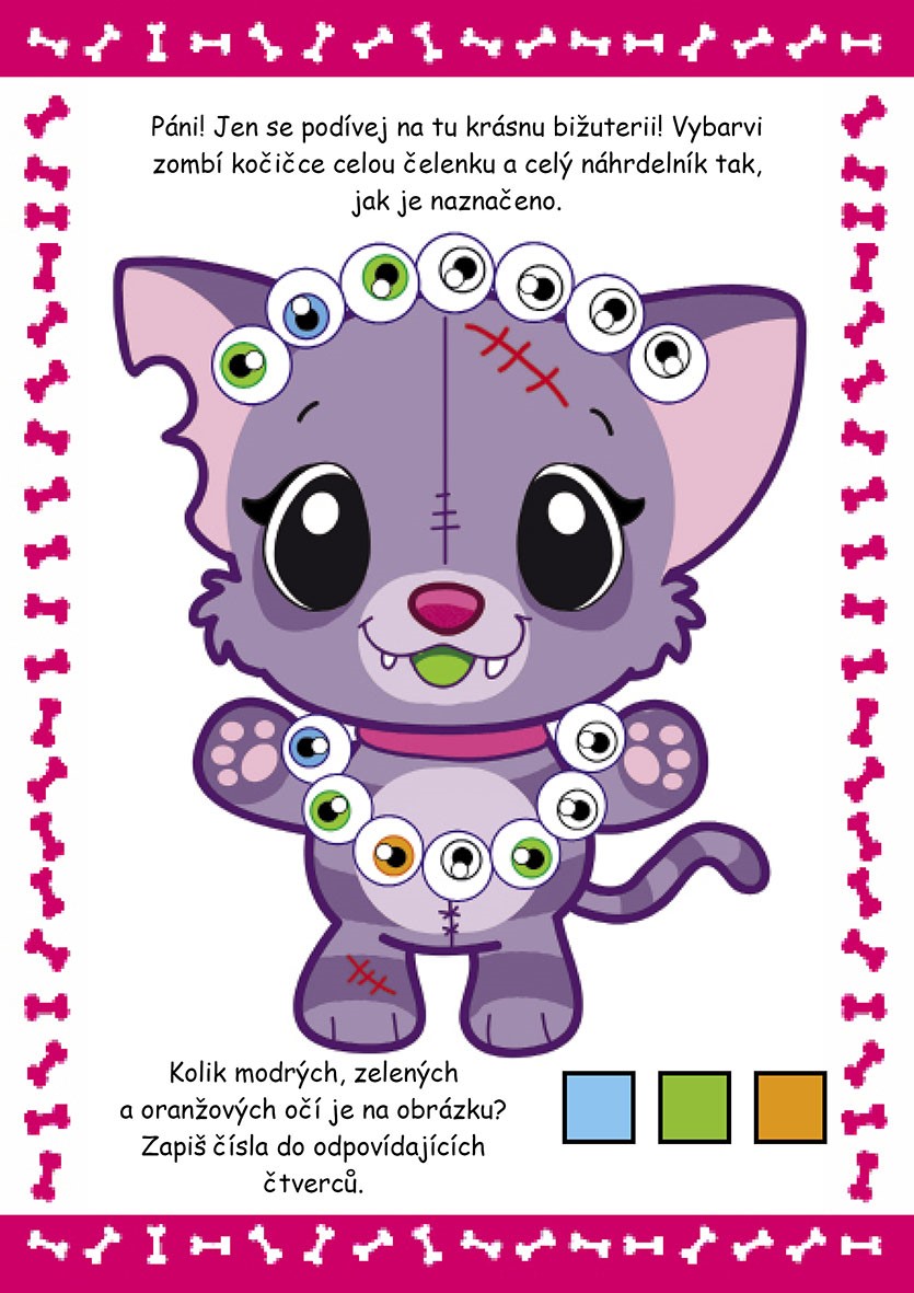 S milými masožravými rostlinami a roztomilými zvířecími strašidýlky zažijete spoustu originální zábavy. Čekají vás hry, bludiště a další staršidlácké úkoly. Také si můžete vystřihnout úžasné prstové loutky a zahrát si s nimi divadlo. A to nejlepší nakonec – skvělé samolepky zombíků, které svítí ve tmě!